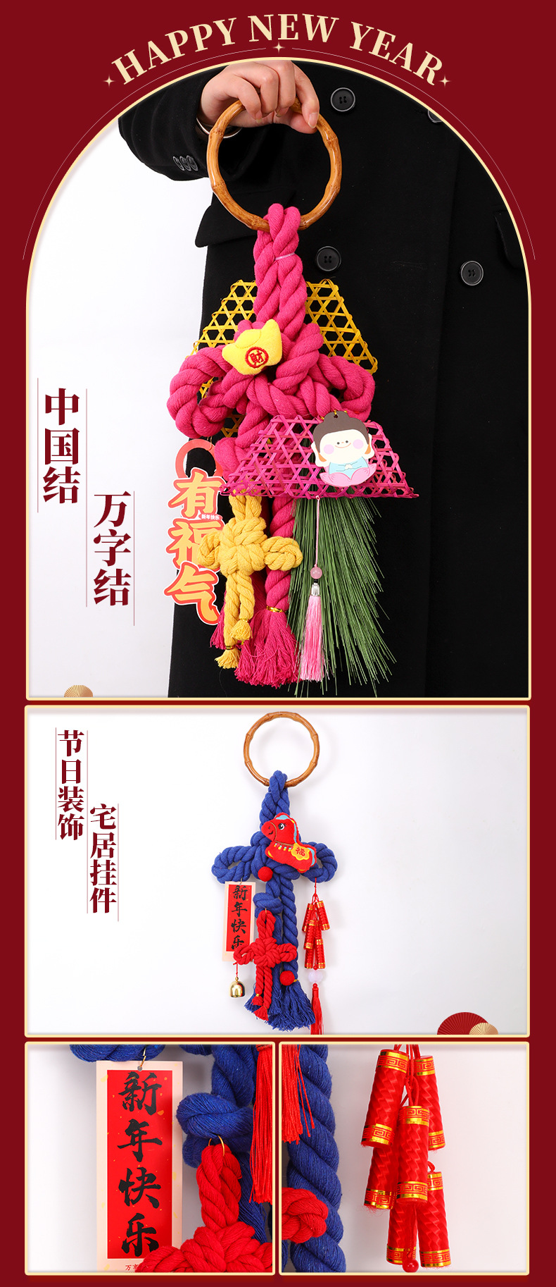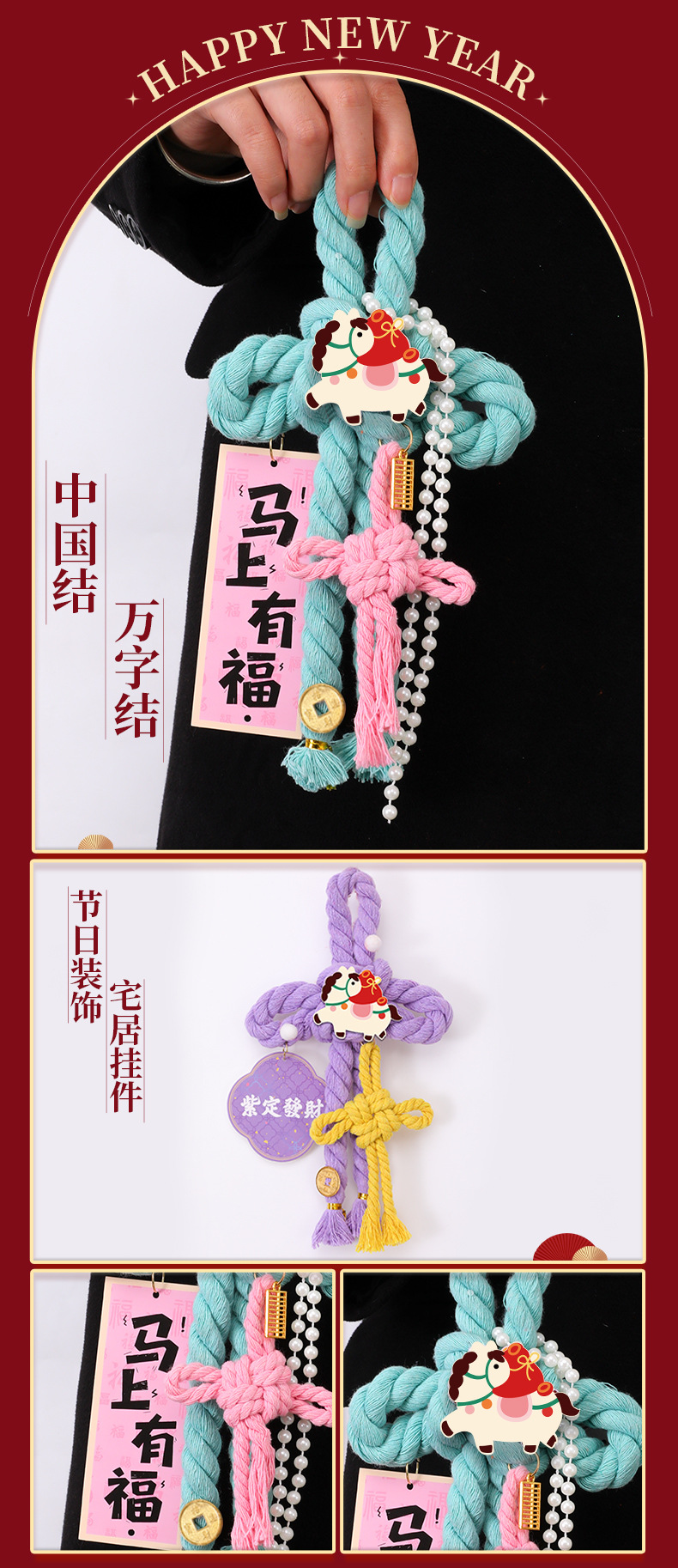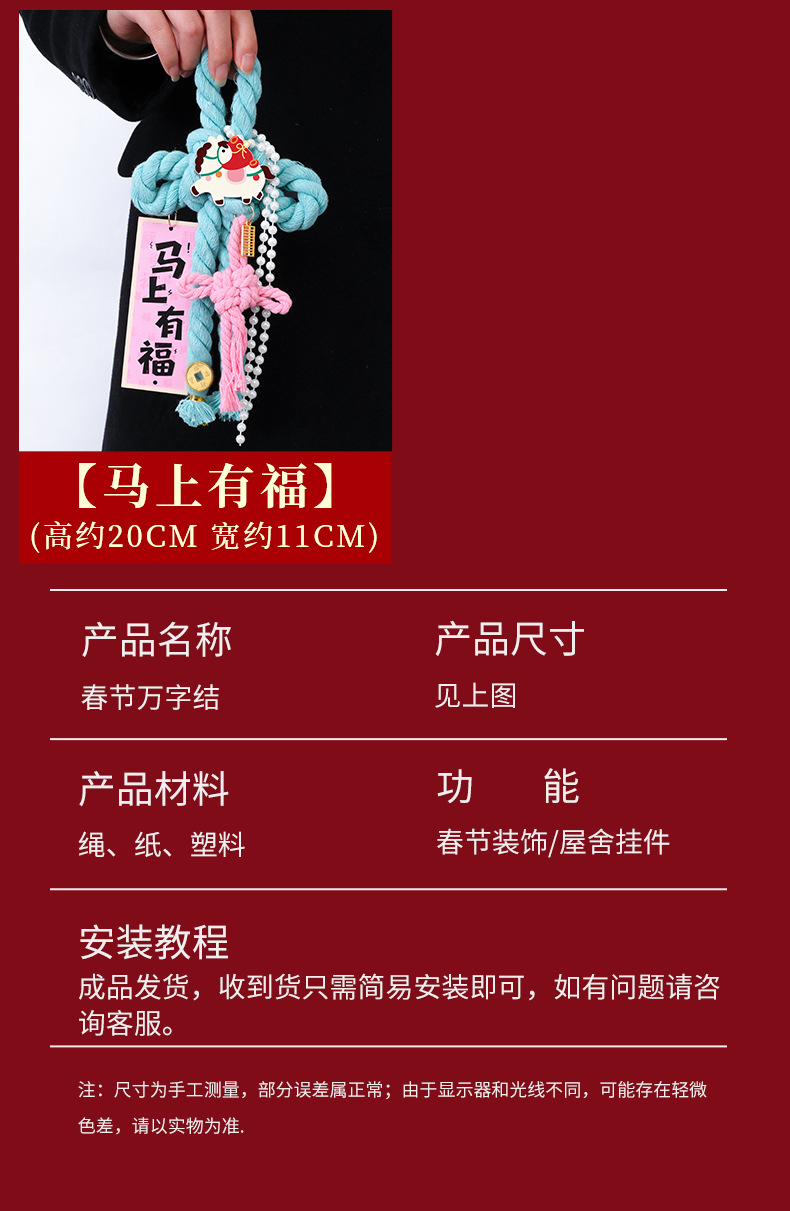 【马年专属万字结 紫定发财】2026新年装饰挂件中国结入户款 马年元旦过年布置 新春喜庆门挂 大小号可选