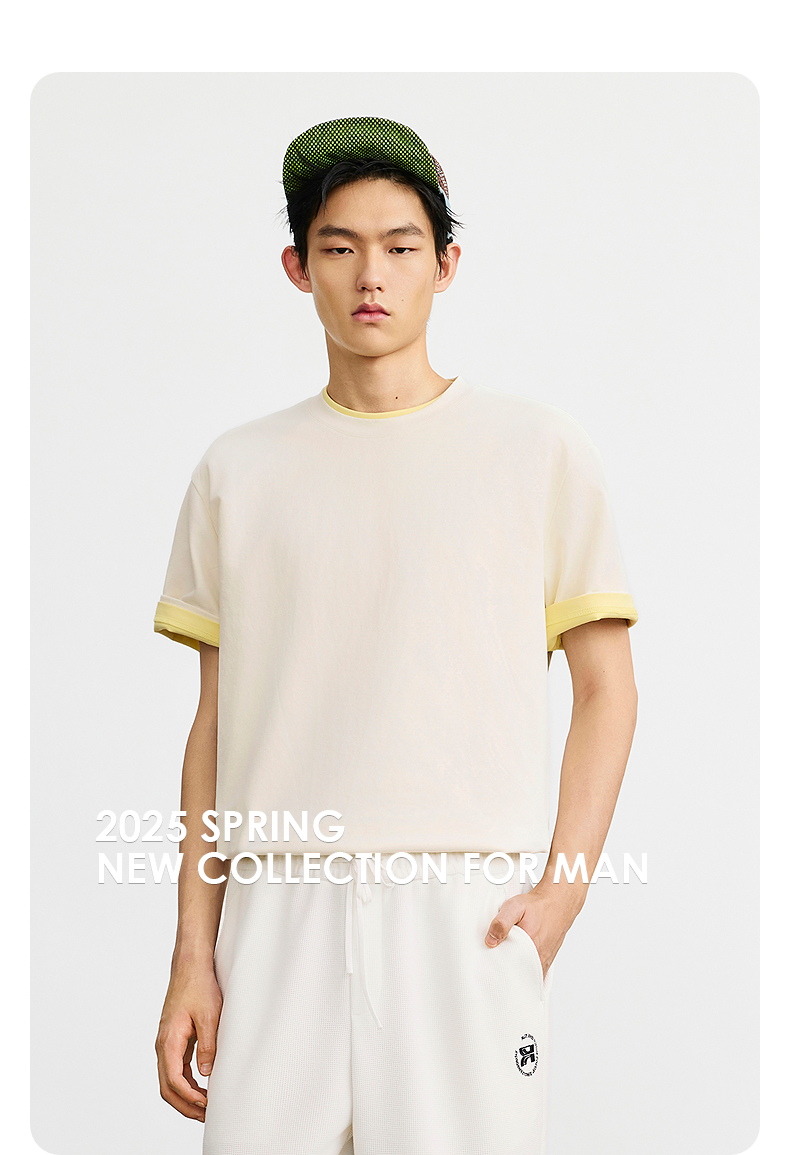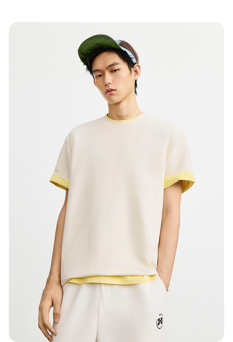 gxgjeans男装 【男女同款】超好搭新品T恤多色可选肩部嵌条休闲宽松圆领短袖t恤男 26夏新品【白色M-XL;卡其M-L预计5.17发货】
