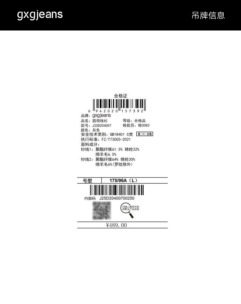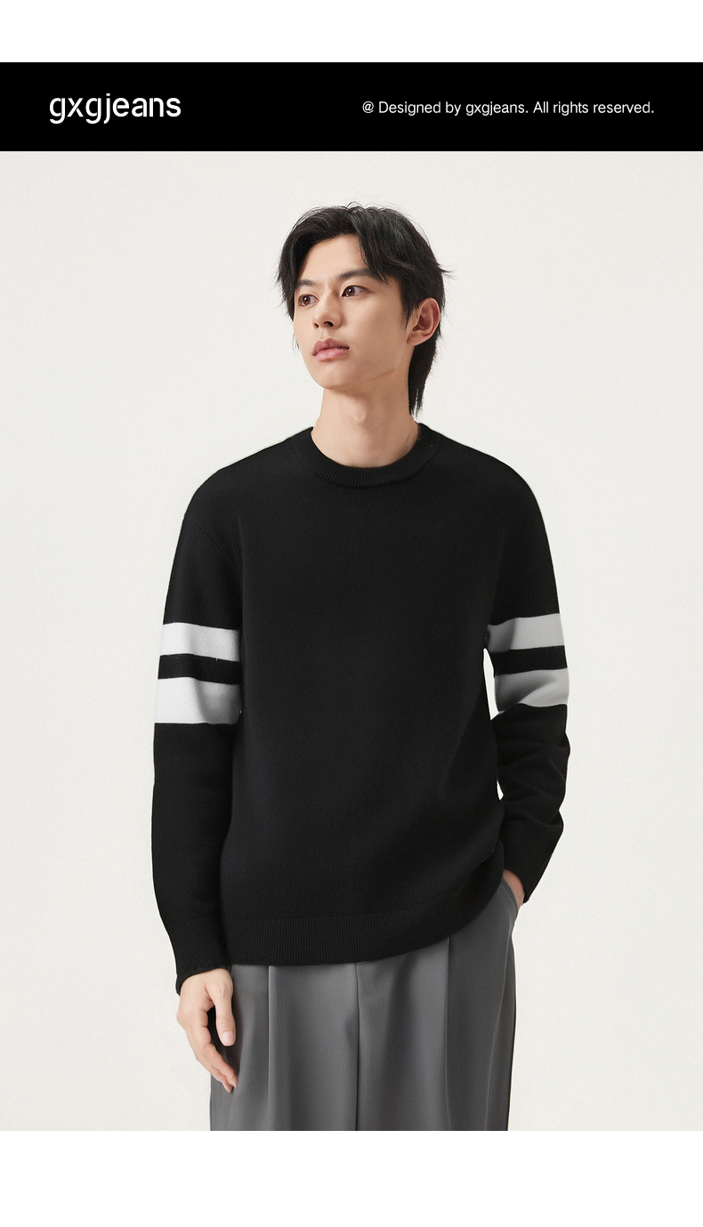gxg.jeans男装 双色撞色拼接时尚简约圆领毛衣线衫上衣 25冬热卖