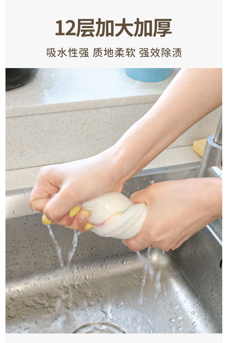 「6条装!抖音同款」12层加厚彩虹疏油抹布洗碗布 纯棉纱抹布刷碗巾吸水不易掉毛百洁布清洁工具厨房用品