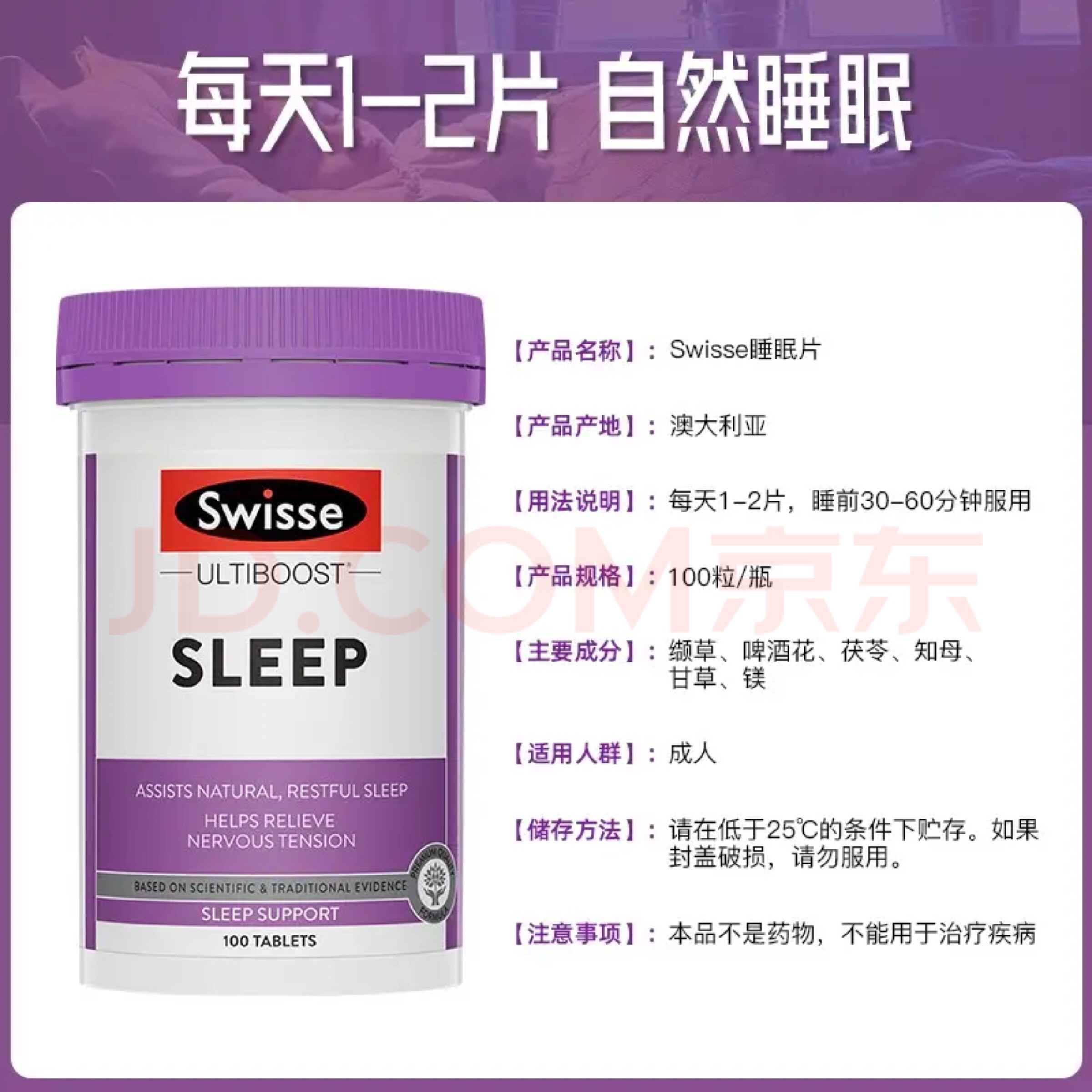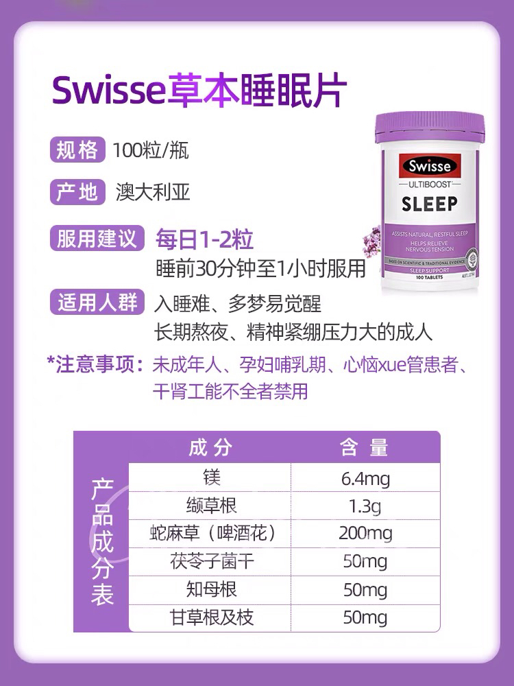 澳洲Swisse睡眠片-成人睡眠缓解压力草本植物-会员6折
