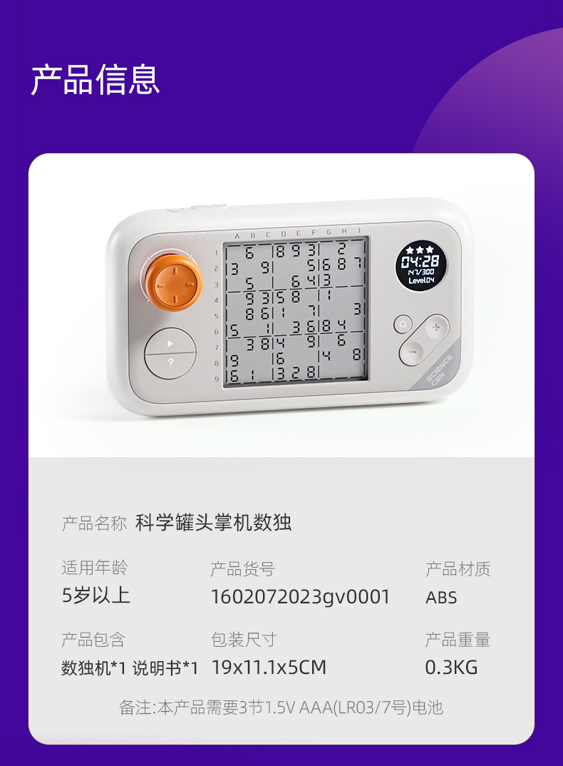 科学罐头掌机数独智能机思维进阶益智掌机送学而思课程+3节7号电池+螺丝刀