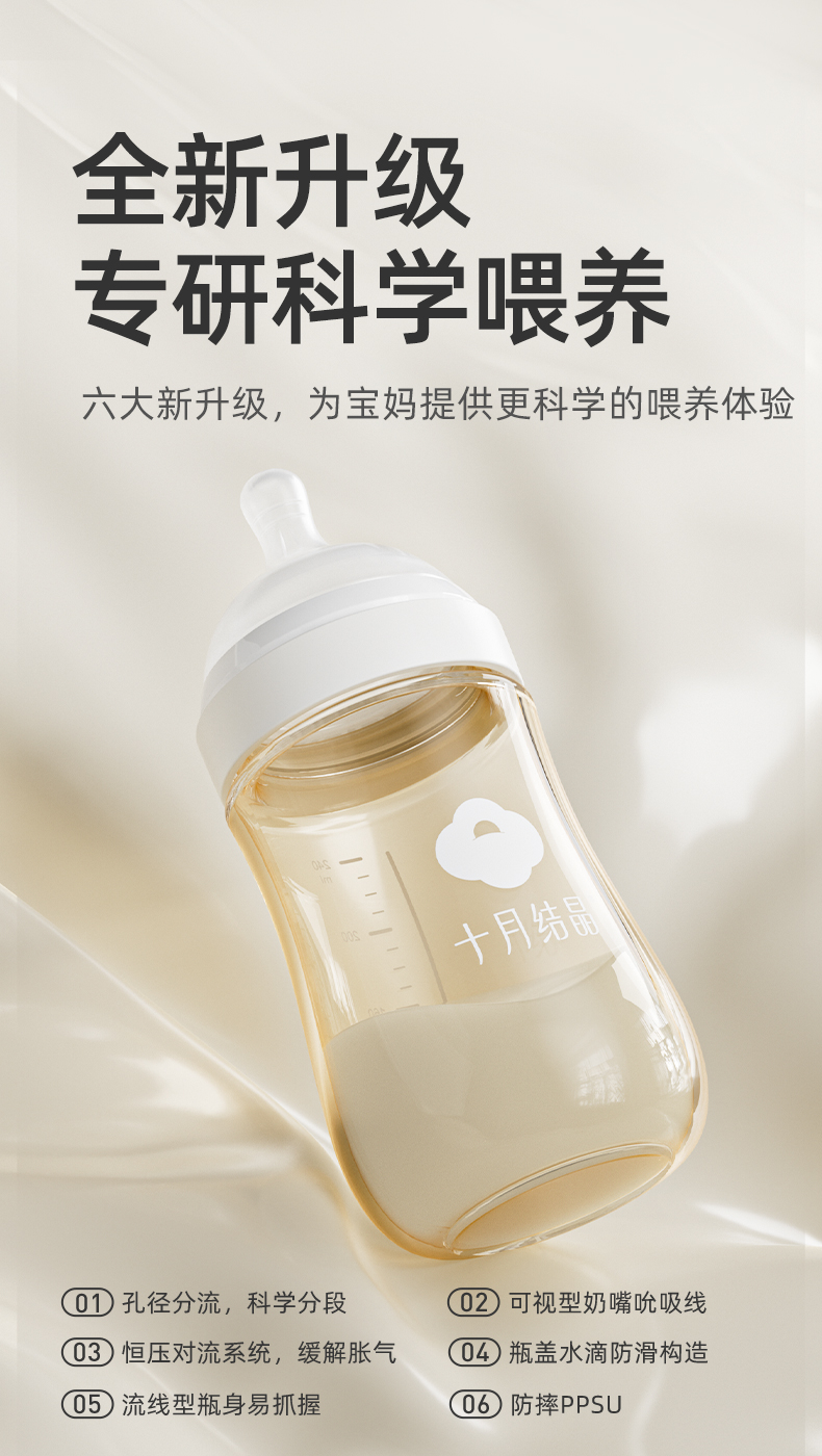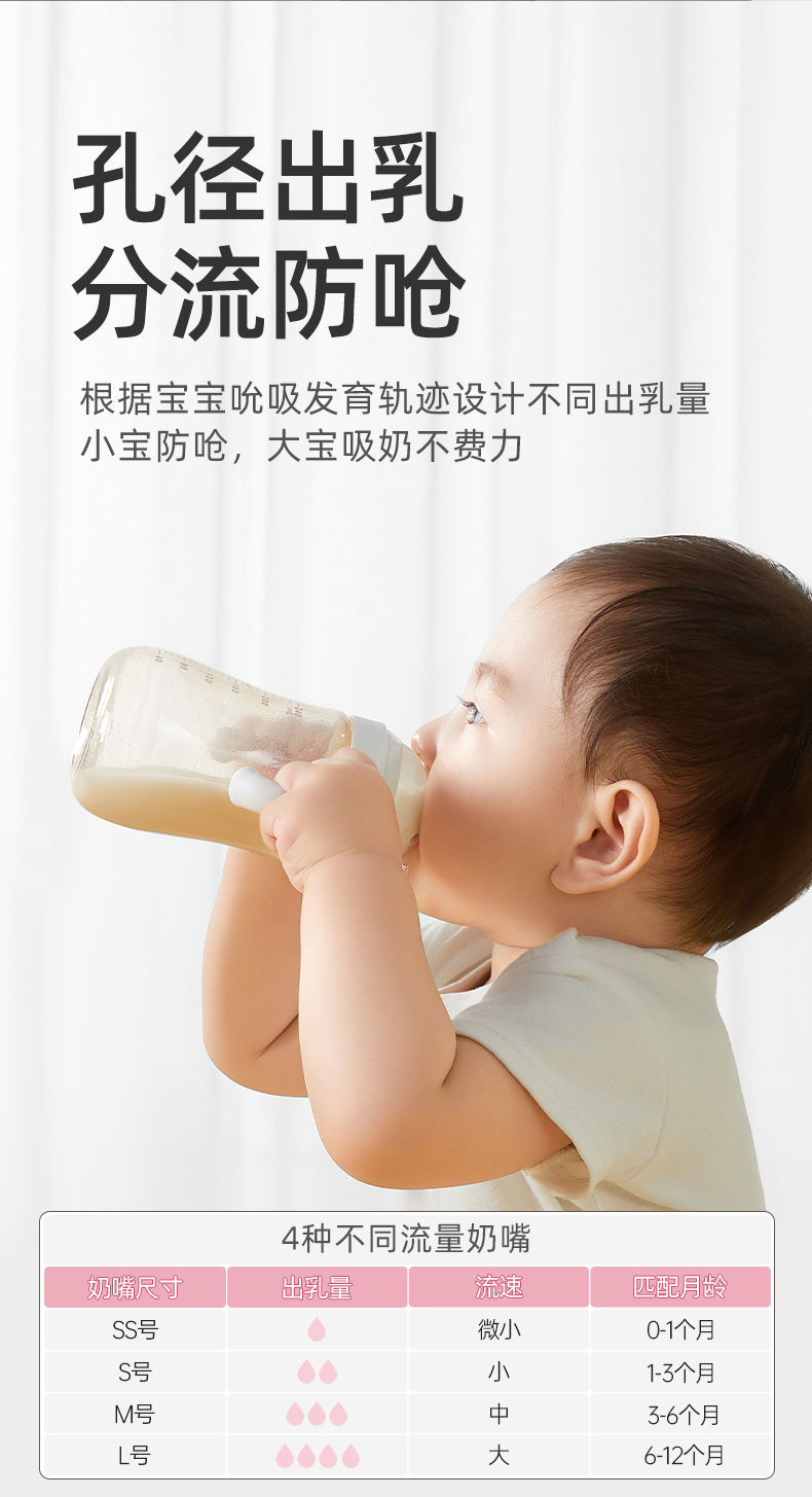 新生儿宽口奶瓶PPSU婴儿大宝宝仿母乳防胀气初生0到6个月