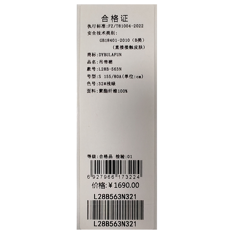 戴布拉芬吊带裙L28B563N