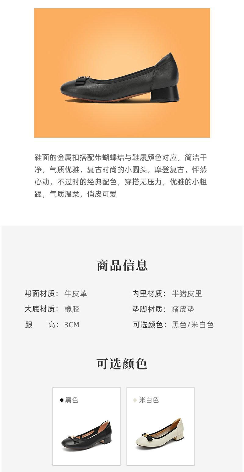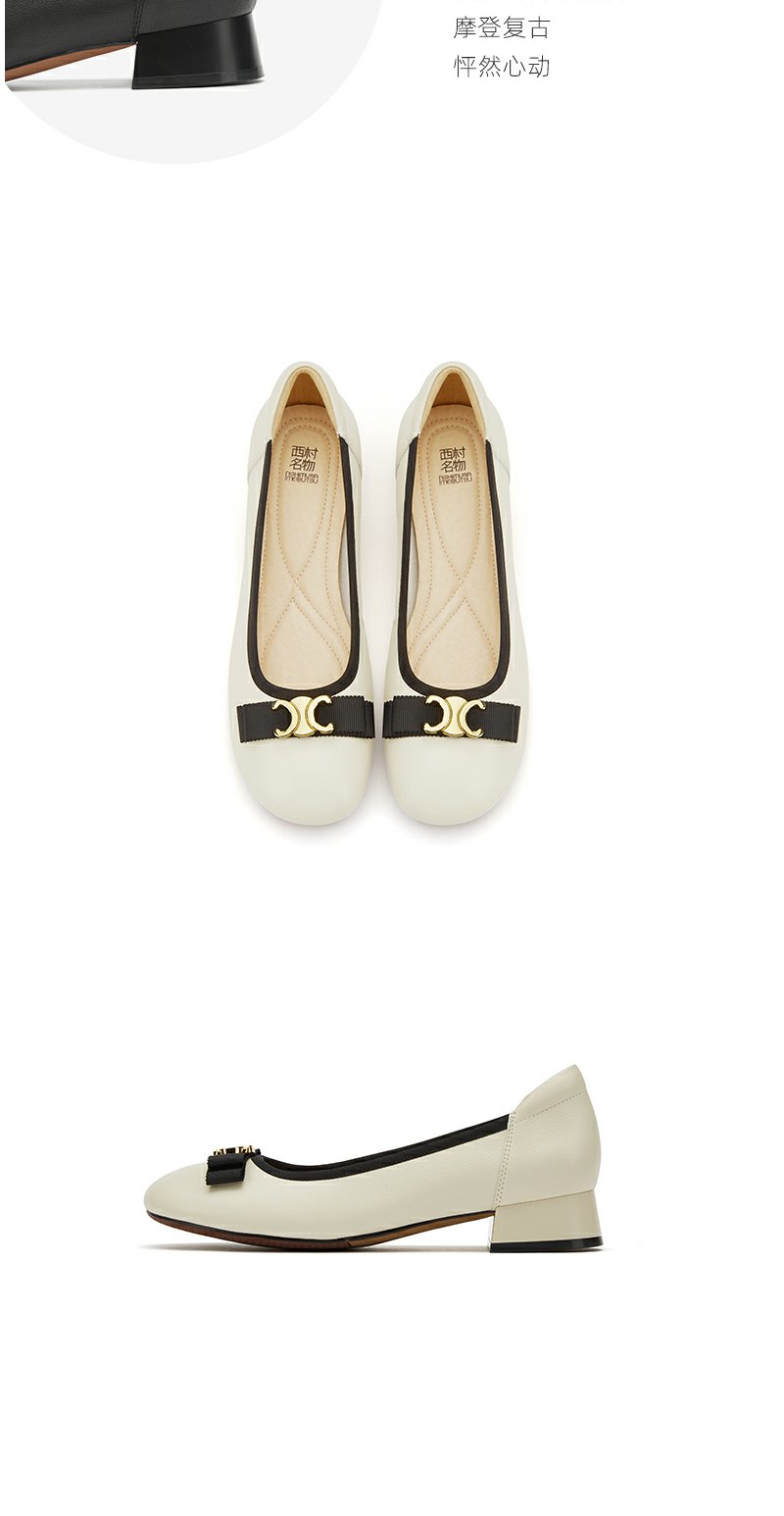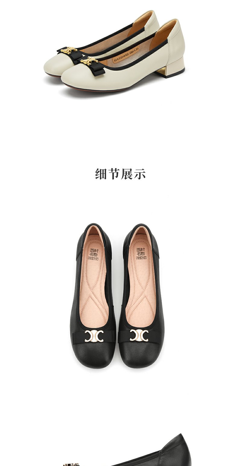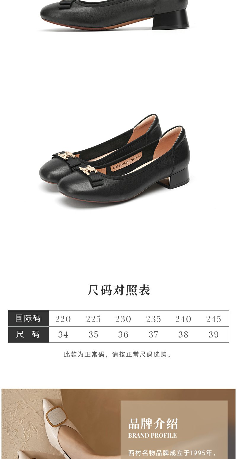 西村名物2021秋新款蝴蝶结单鞋女商城同款通勤粗跟休闲皮鞋33161