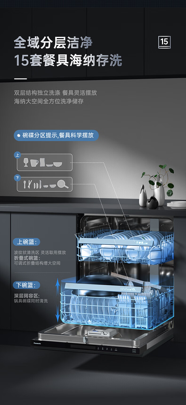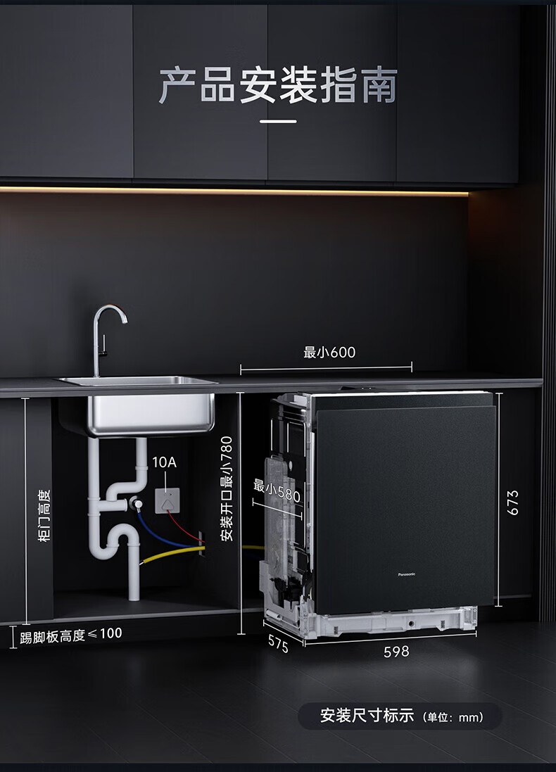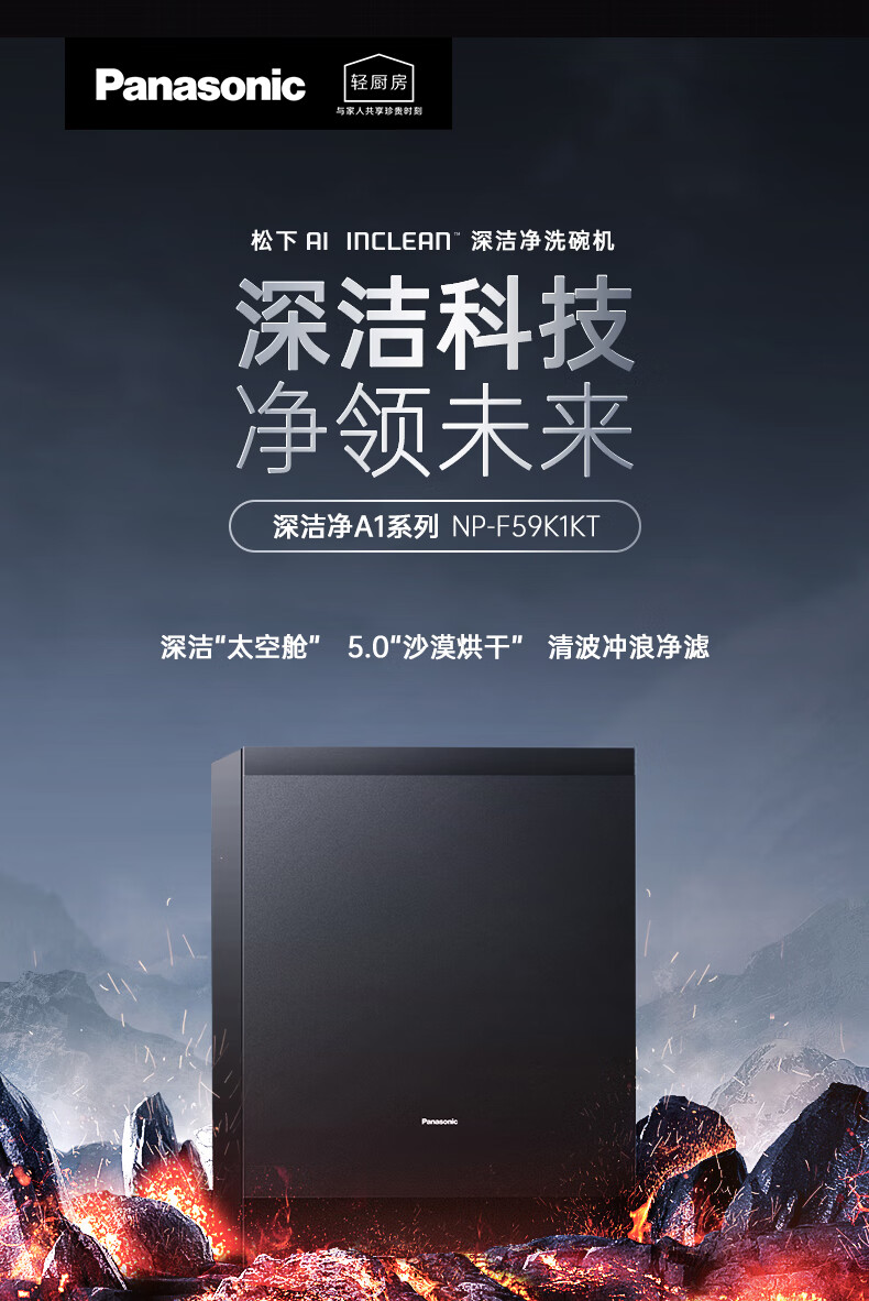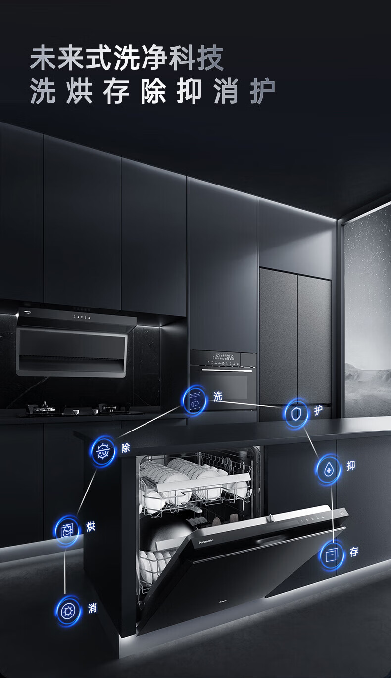 松下(Panasonic)洗碗机嵌入式15套A1系列 135℃高温除菌沙漠烘干软水系统3层喷淋腔体去残水NP-F59K1KT甄选