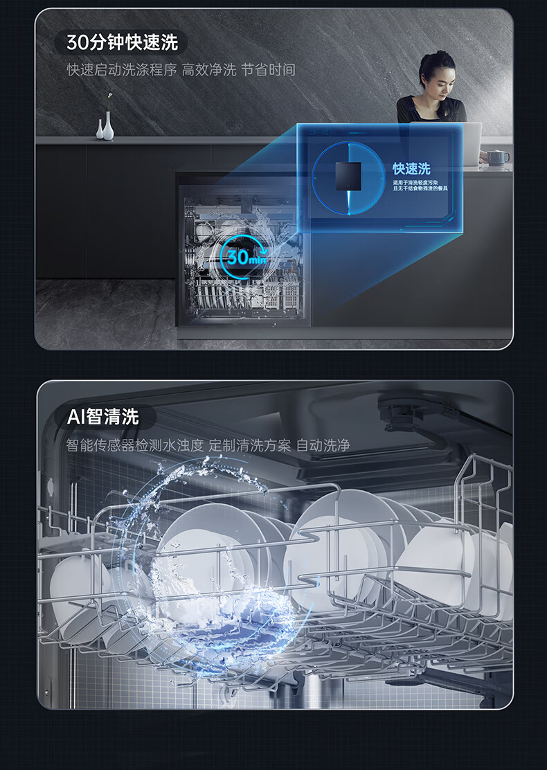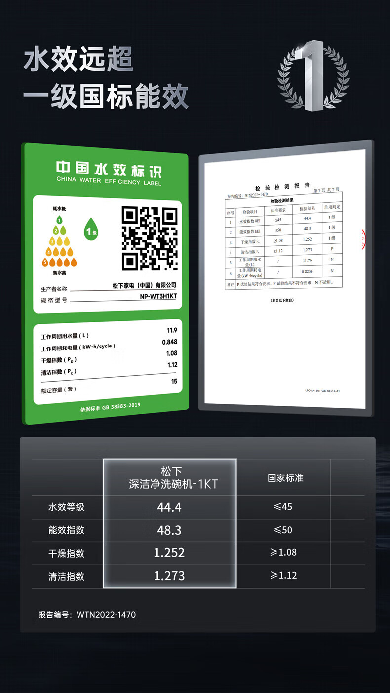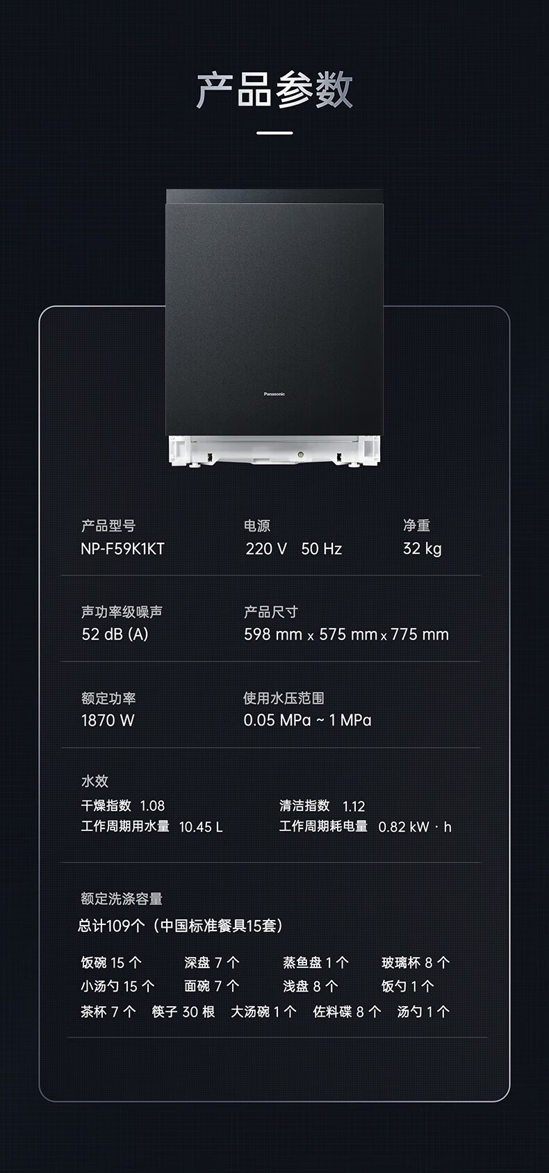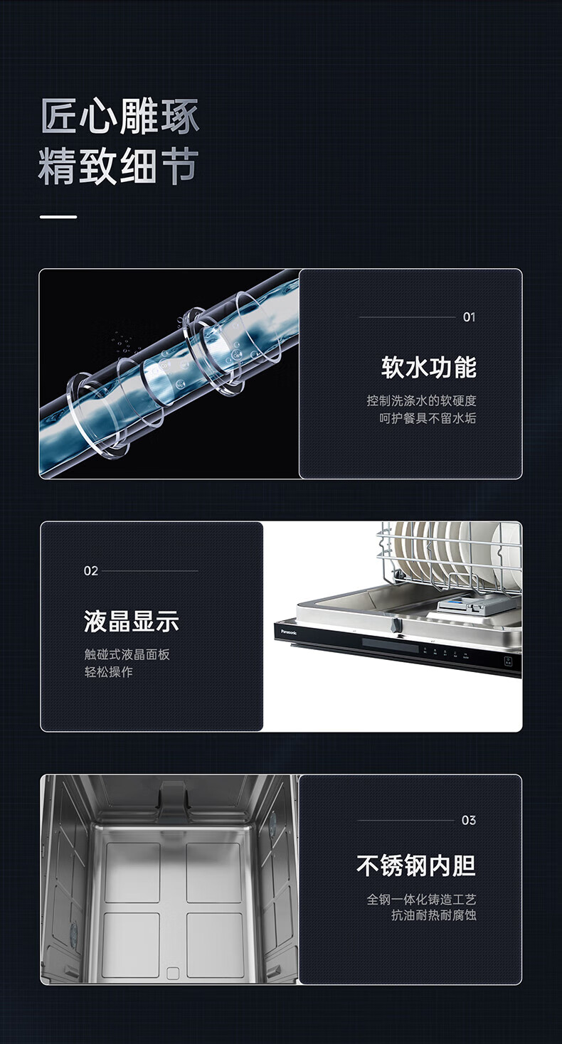 松下(Panasonic)洗碗机嵌入式15套A1系列 135℃高温除菌沙漠烘干软水系统3层喷淋腔体去残水NP-F59K1KT甄选