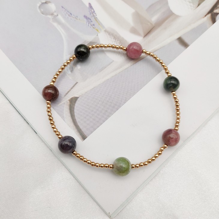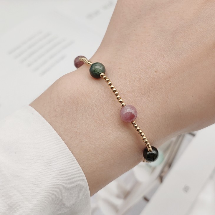 碧玺时尚手链(9k金珠)