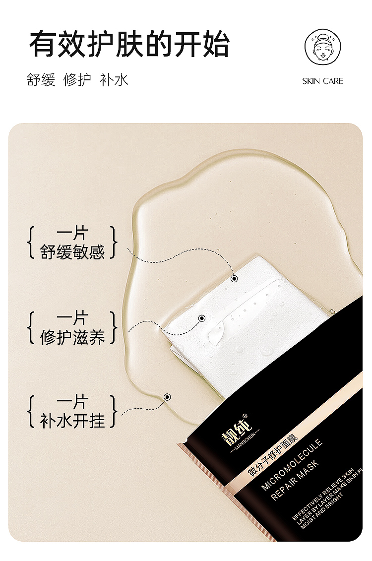 【买3送1,下单拍4】靓纯微分子面膜保湿舒缓修护晒后快速补水修复WS20736