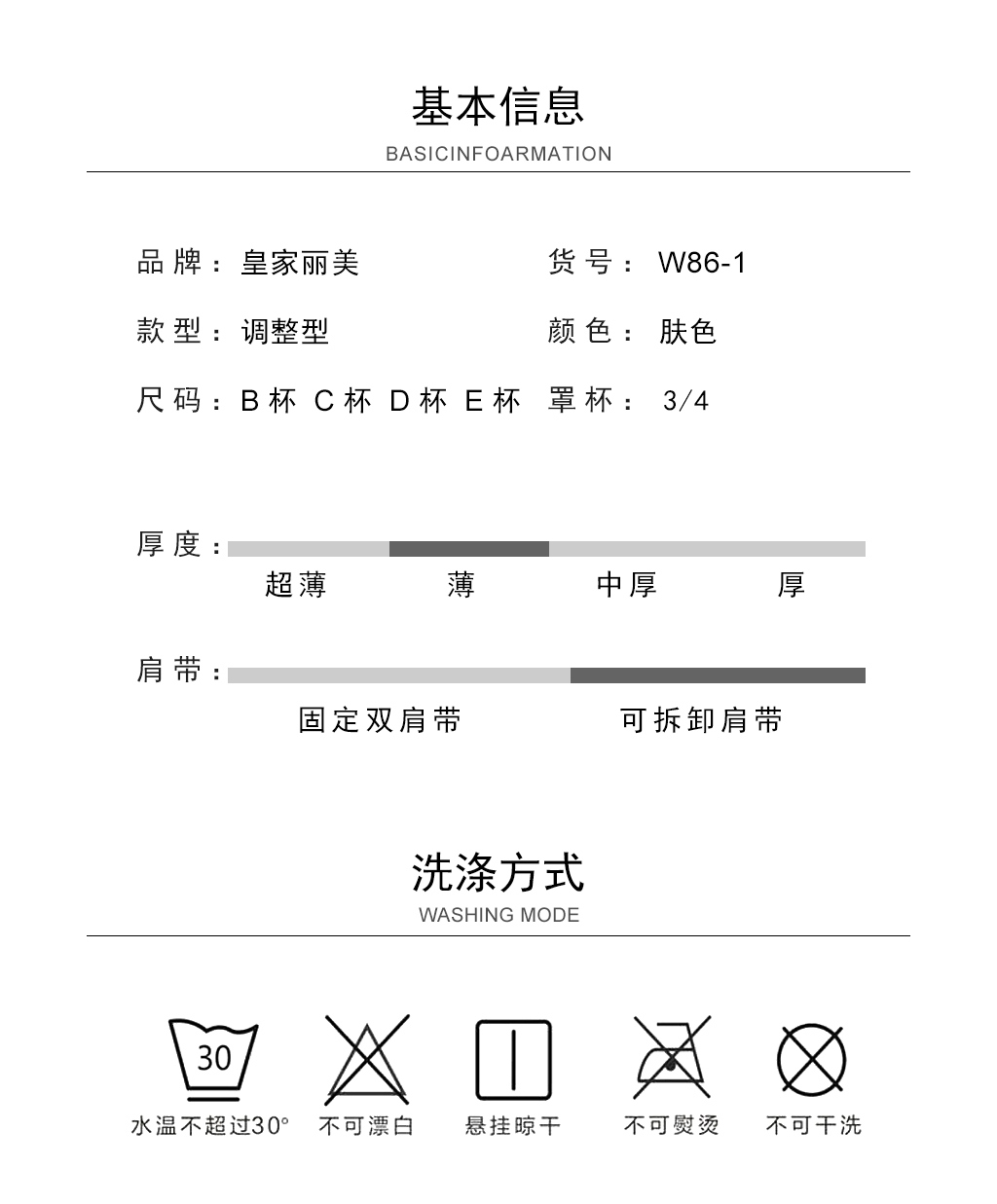【秒杀品不退不换】皇家丽美薄杯带钢圈收副乳聚拢调整型文胸W86-1