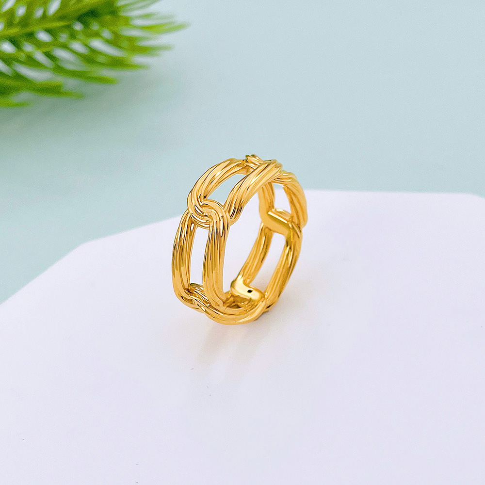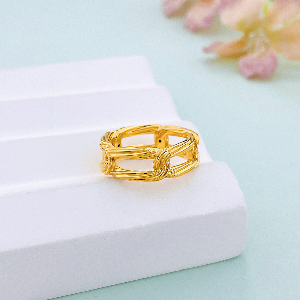 【限时克减150元】足金 无氰5D硬金固口戒指镂空绕线环环相扣链条圈戒(AU5DJZ00026)(预售产品下单后不退款不退货不换货不补差