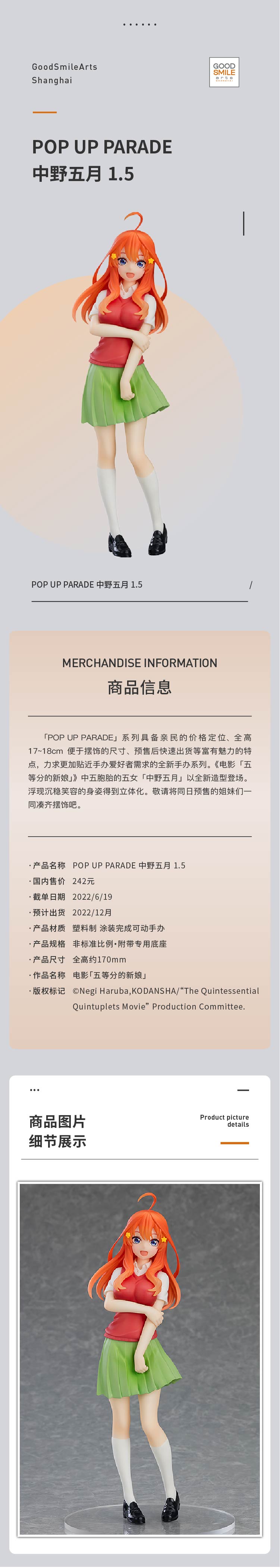 【GSC现货】POP UP PARADE 中野五月 1.5