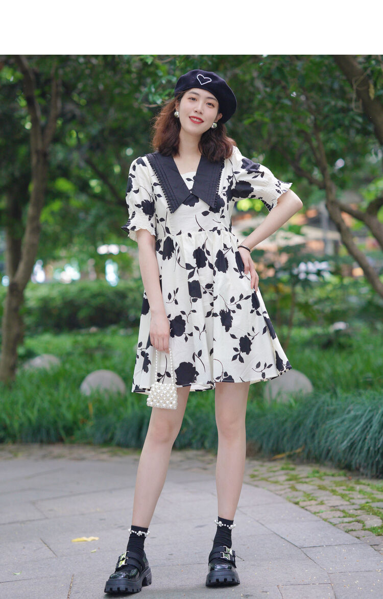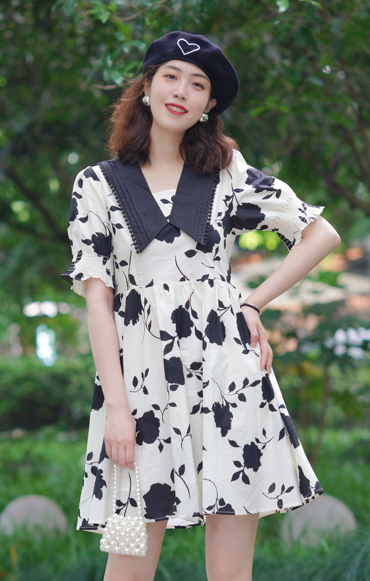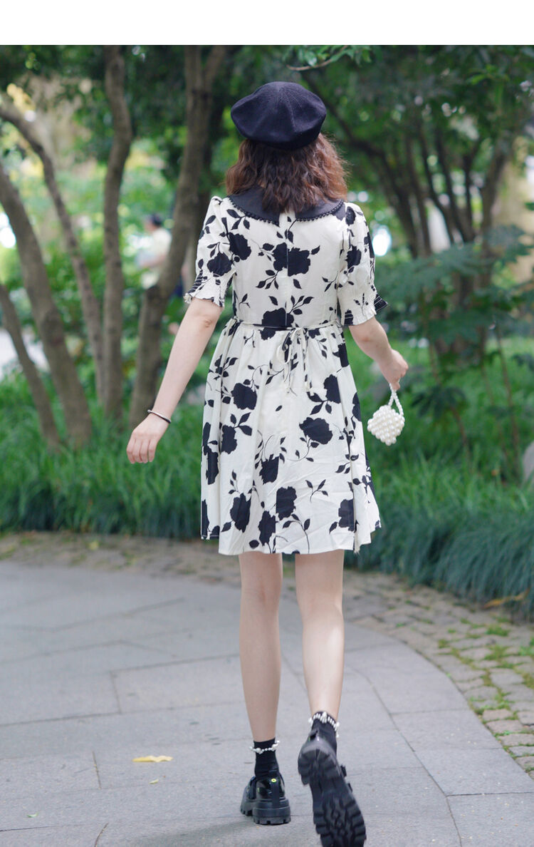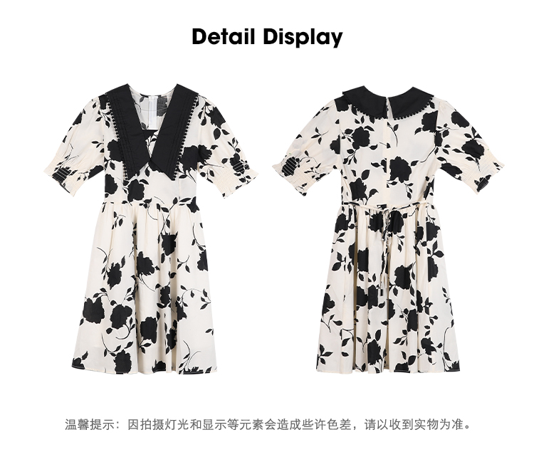 NEELLY纳俪商场同款气质撞色翻领连衣裙女收腰娃娃裙中长款百搭