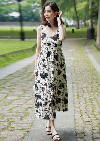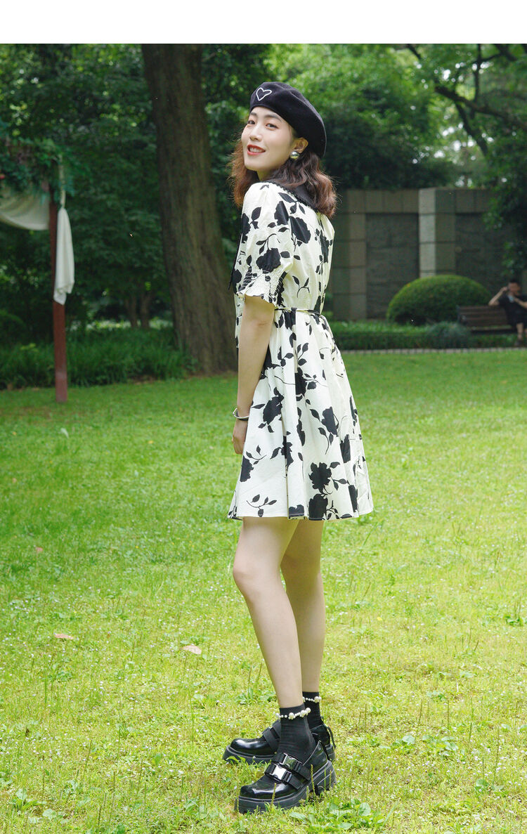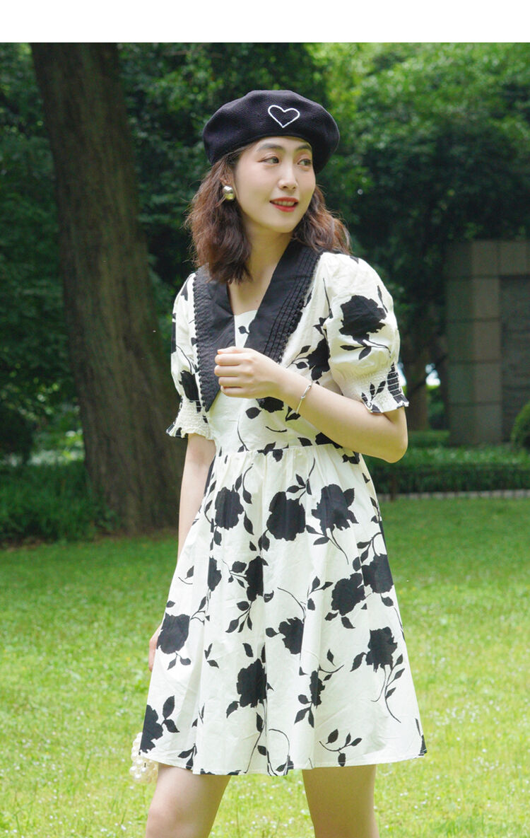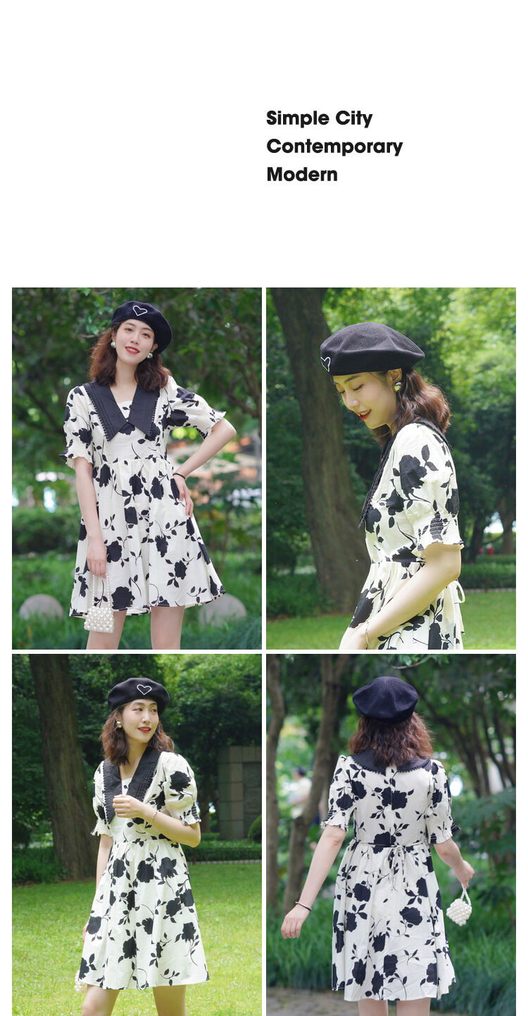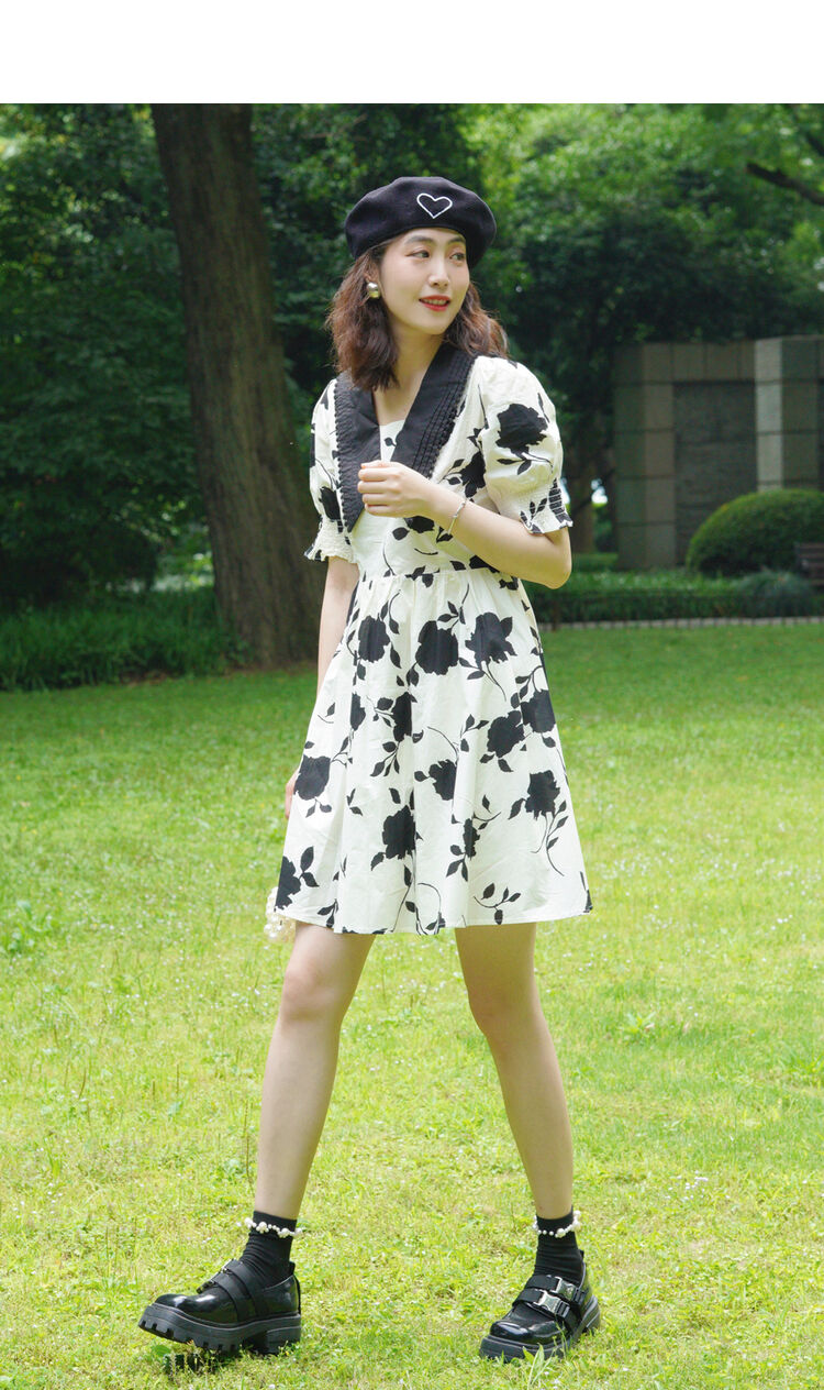 NEELLY纳俪商场同款气质撞色翻领连衣裙女收腰娃娃裙中长款百搭