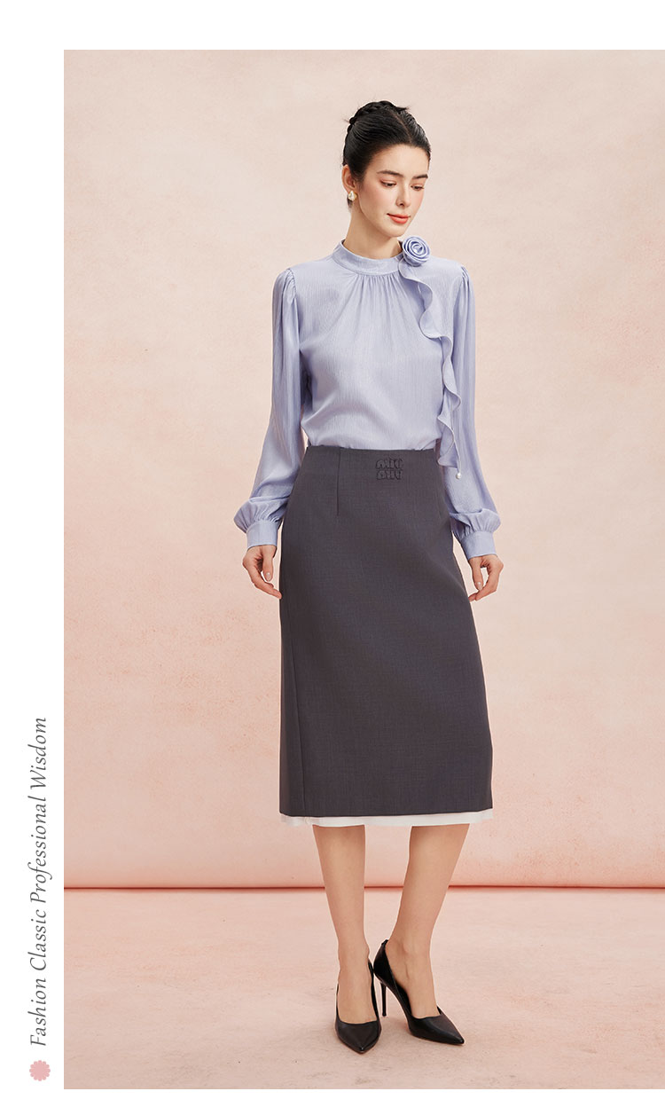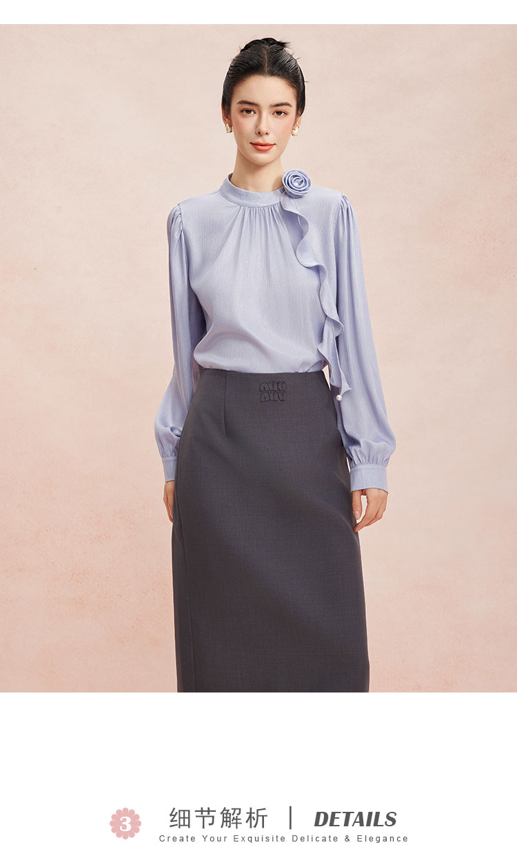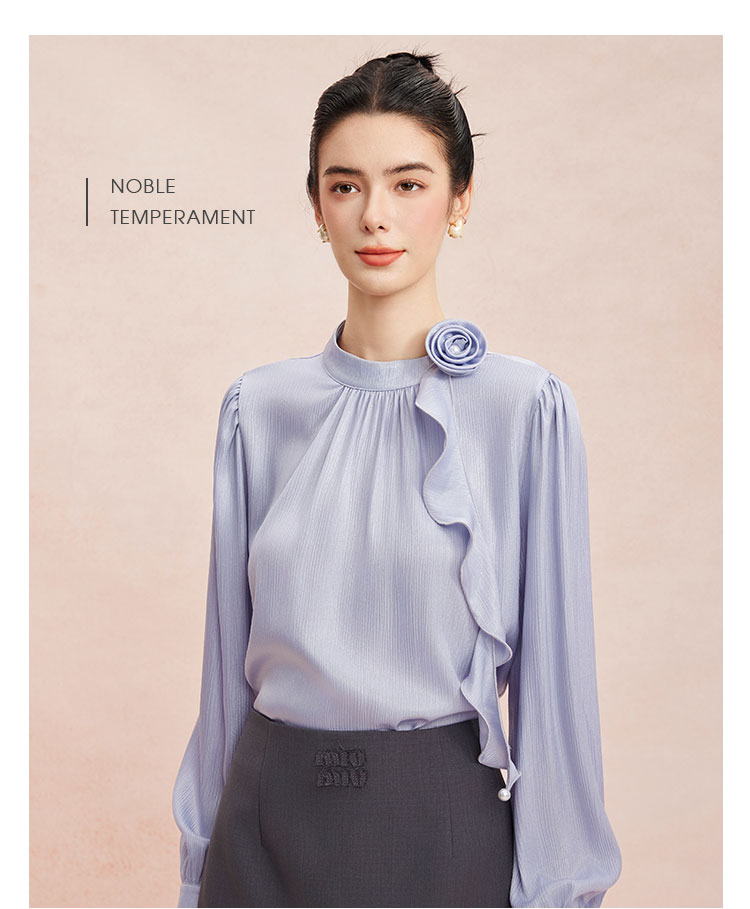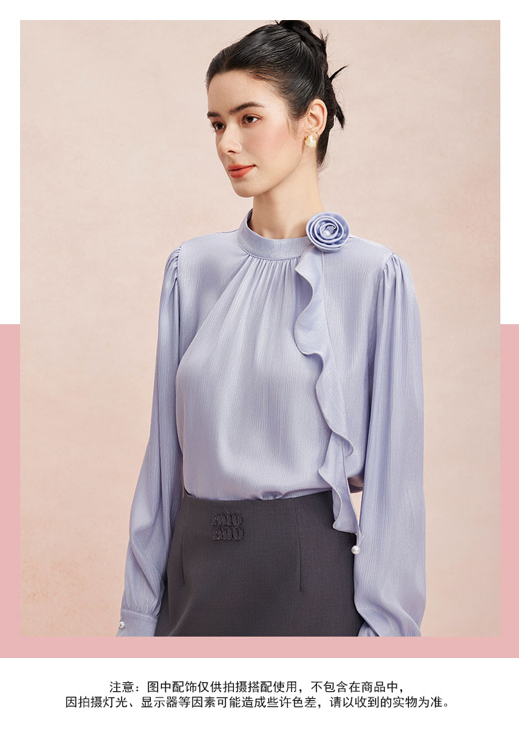 RE252斯尔丽26新款光泽感高级感可脱卸手盘花长袖职业通勤优雅纯色衬衫