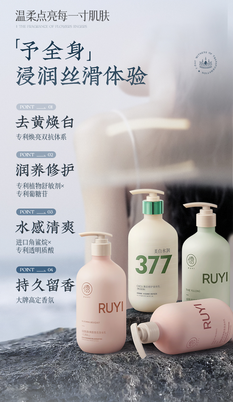 儒意烟酰胺焕靓香氛身体乳500g 377美白身体乳 补水保湿 滋润持久留香 72小时香水型 | 儒意官方商城