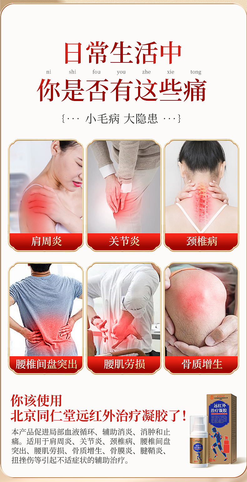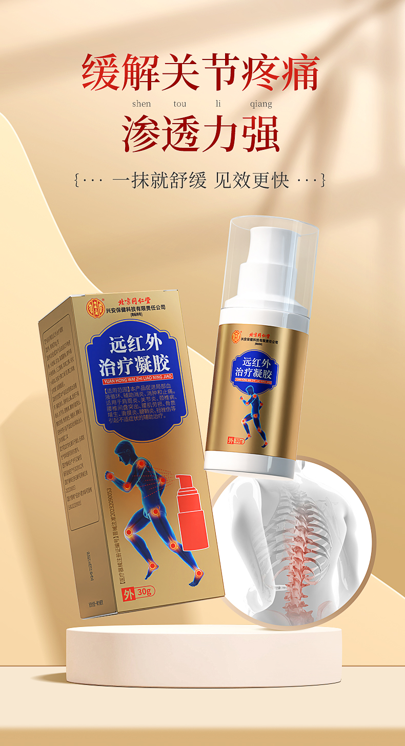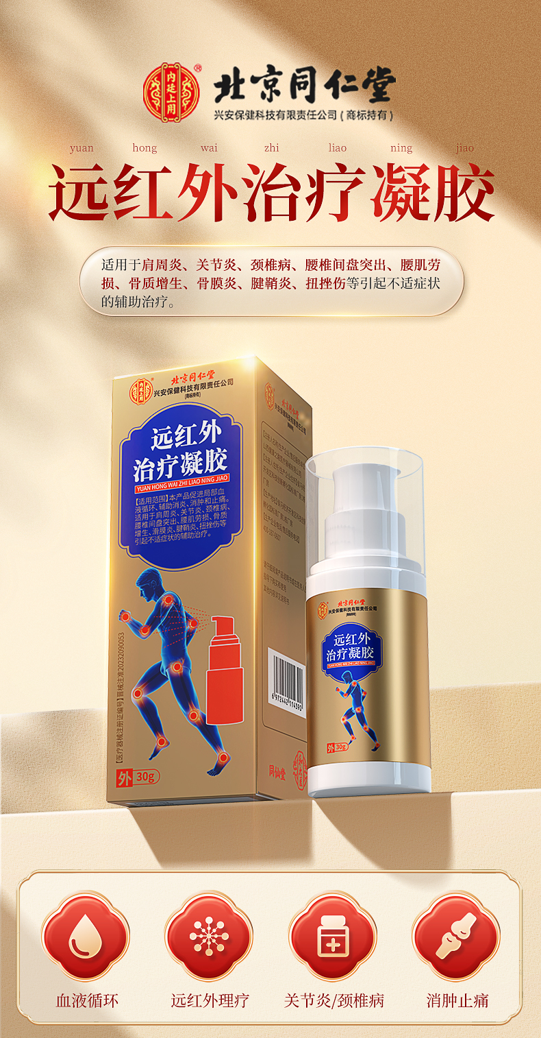 【创办于1669年!传承350年历史】北京同仁堂远红外治疗凝胶 涂于肩周炎、关节炎、颈椎病、腰椎间盘突出、腰肌劳 损、骨质增生、骨膜炎、睫鞘炎、扭挫伤发热安全温和0添加 30g/瓶