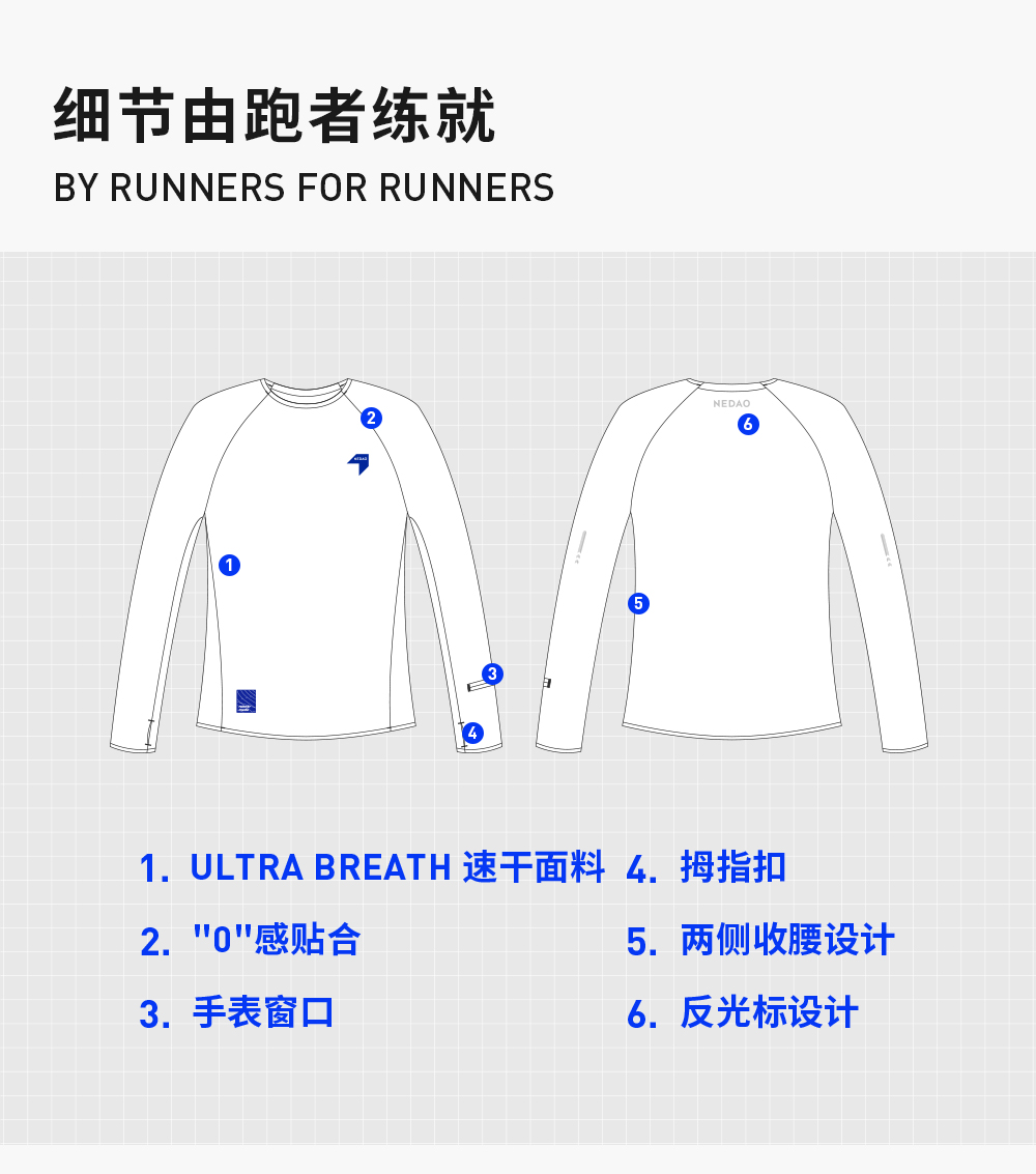 NEDAO内道新品能量方格AIR带帽长袖男士保暖透湿干爽马拉松男跑步长袖