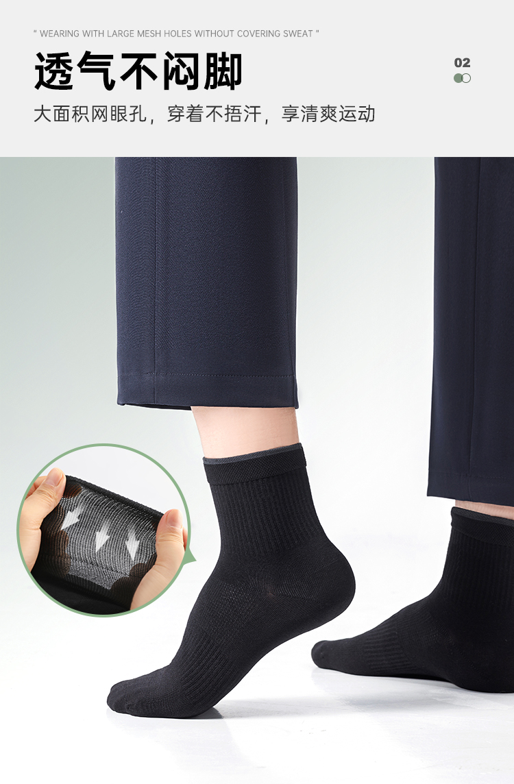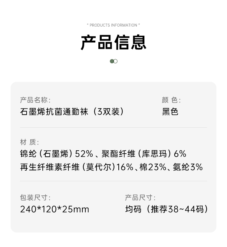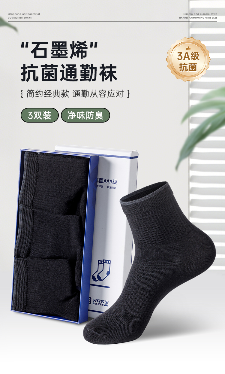 【实付满399送保温杯】【石墨烯抑菌通勤袜(3双装)】透气通勤训练中筒袜 男士防臭运动跑步袜子