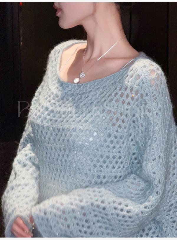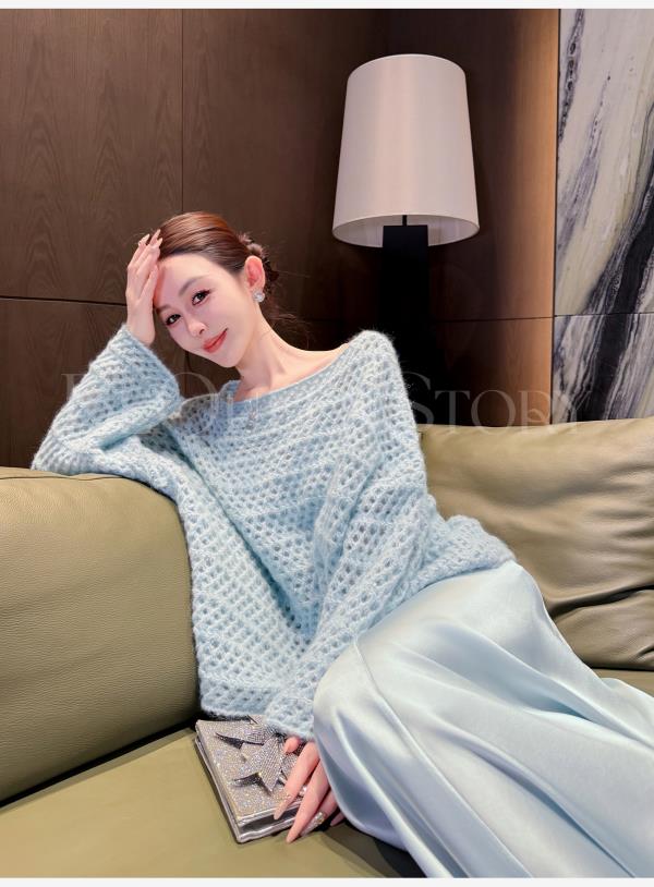 【孤品样衣,不退不换】【慵懒舒芙蕾】马海毛羊毛混纺宽松镂空洞洞罩衫外搭针织毛衣