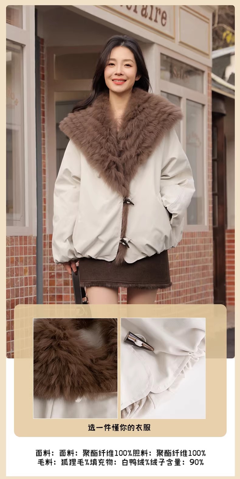 【门店同款】ENJOY冬季“游牧漫寻”狐狸毛翻领派克服 169094305
