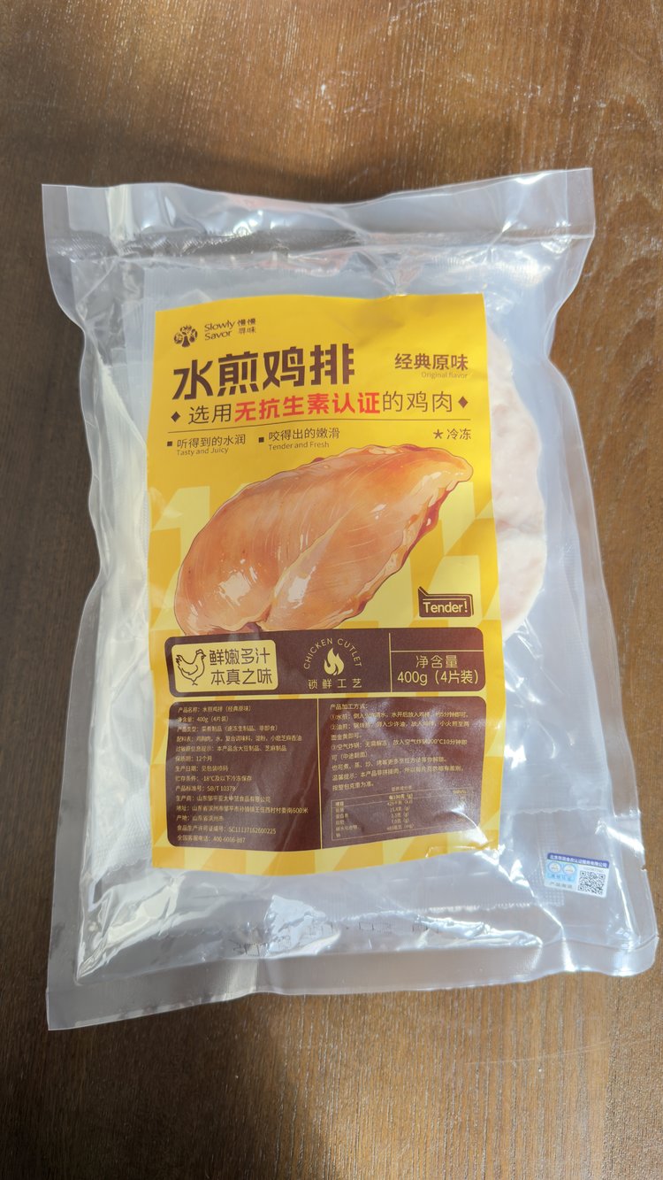 这款水煎鸡排选用无抗生素认证鸡肉,从源头把控品质,老人小孩都能放心吃。