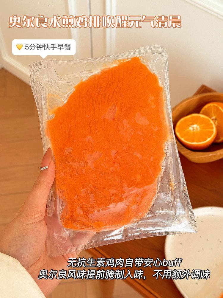 无抗生素认证鸡肉,提前腌好奥尔良风味,拆袋直接煎。