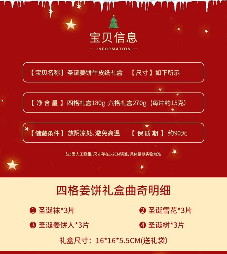 【爆款超低价预售 急单慎拍】圣诞节手工曲奇饼干黄油姜饼礼盒装伴手礼物送男女友儿童点心零食