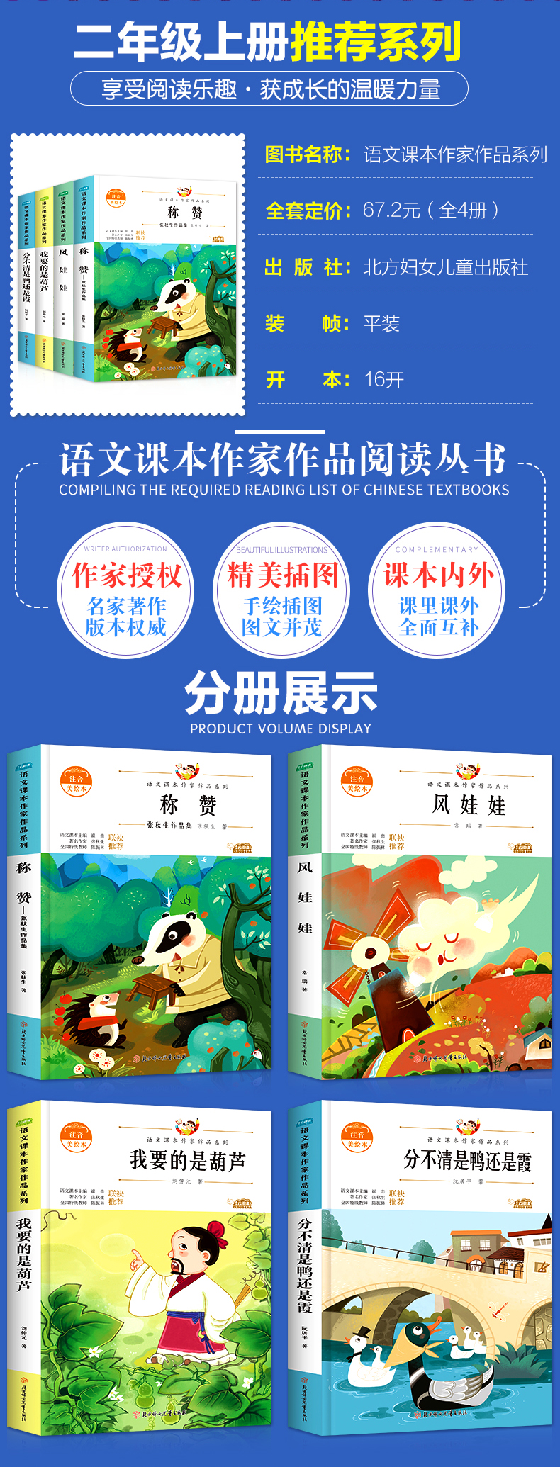 小学二年级上册必读课外书全套4册老师推荐注音版经典书目 带拼音儿童文学读物6到8岁绘本故事书我要的是葫芦称赞分不清是鸭还是霞