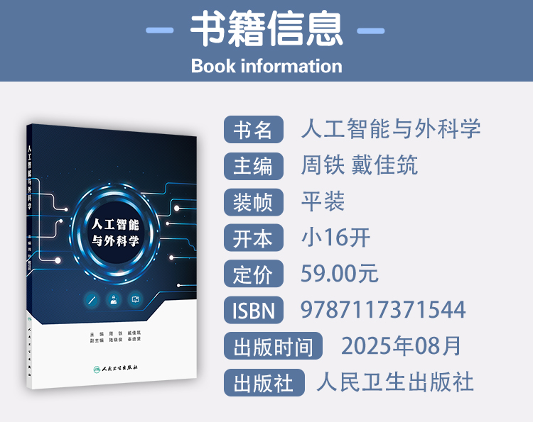 人工智能与外科学 周铁 戴佳筑 采用严谨规范的语言系统介绍人工智能在外科医学中应用的相关内容 9787117371544 人民卫生出版社