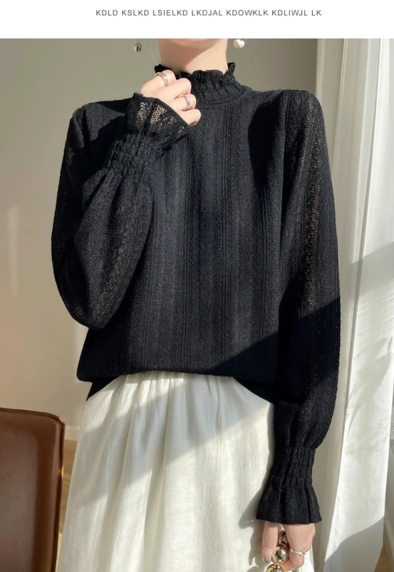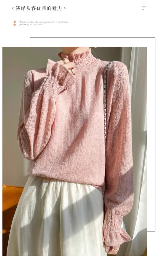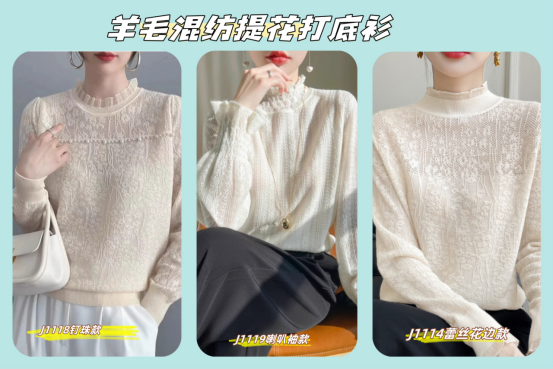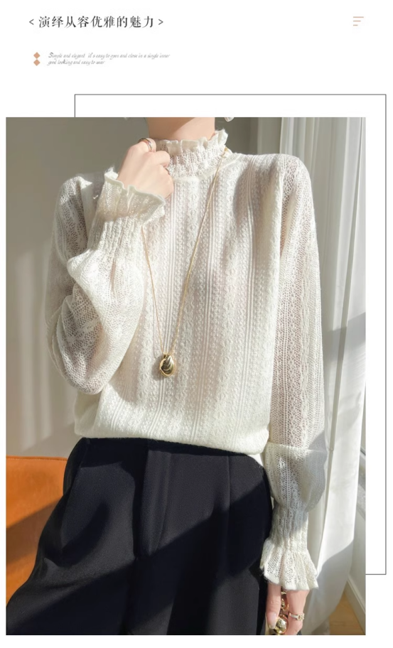 柔软的触感,更富有亲和力,作为内搭的时候,时髦利落不臃肿,外穿也依旧有型。 都是纯色百搭基础款,优质的面料柔软又舒适。 领口、袖口处还有欧更纱的花边拼接设计,增加了层次感! 微透面料透露时髦小心机,穿搭配同色或浅色的内衣不会很透。 舒适的精纺羊毛面料混纺,舒适软糯不挑人~ 手感柔软有质感上身舒适亲肤。