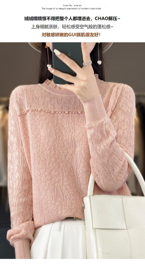 💥太美啦!【羊毛混纺提花打底衫】,💞精纺羊毛面料,优雅迷人又高级~ ✅百搭的基础款,可以中和任何色彩 ✅手感细腻滑糯,💥整个空间弥漫着柔和的温度