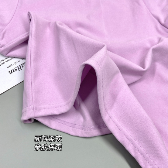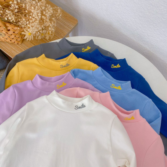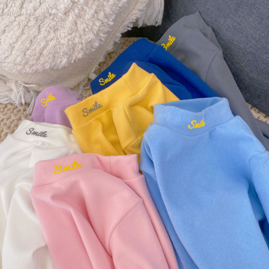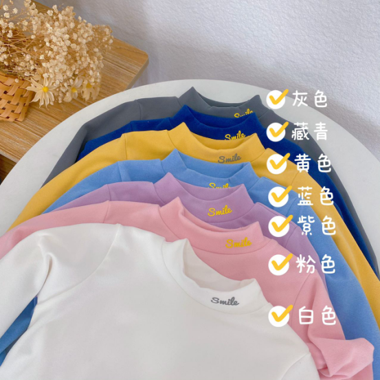面料采用了双层螺纹结构,弹性大不紧绷,保暖效果更好,手感柔软绵糯,亲肤保暖,宝宝自由活动不受束缚修身版型,弹性大不紧绷,秋冬更好搭配外套小高领设计防风护脖,领口的smile印花更加时尚立体,内搭不会太单调双针收边的袖口和下摆,更耐洗耐穿,打底单穿都很舒服,袖口贴合手腕,不易进风