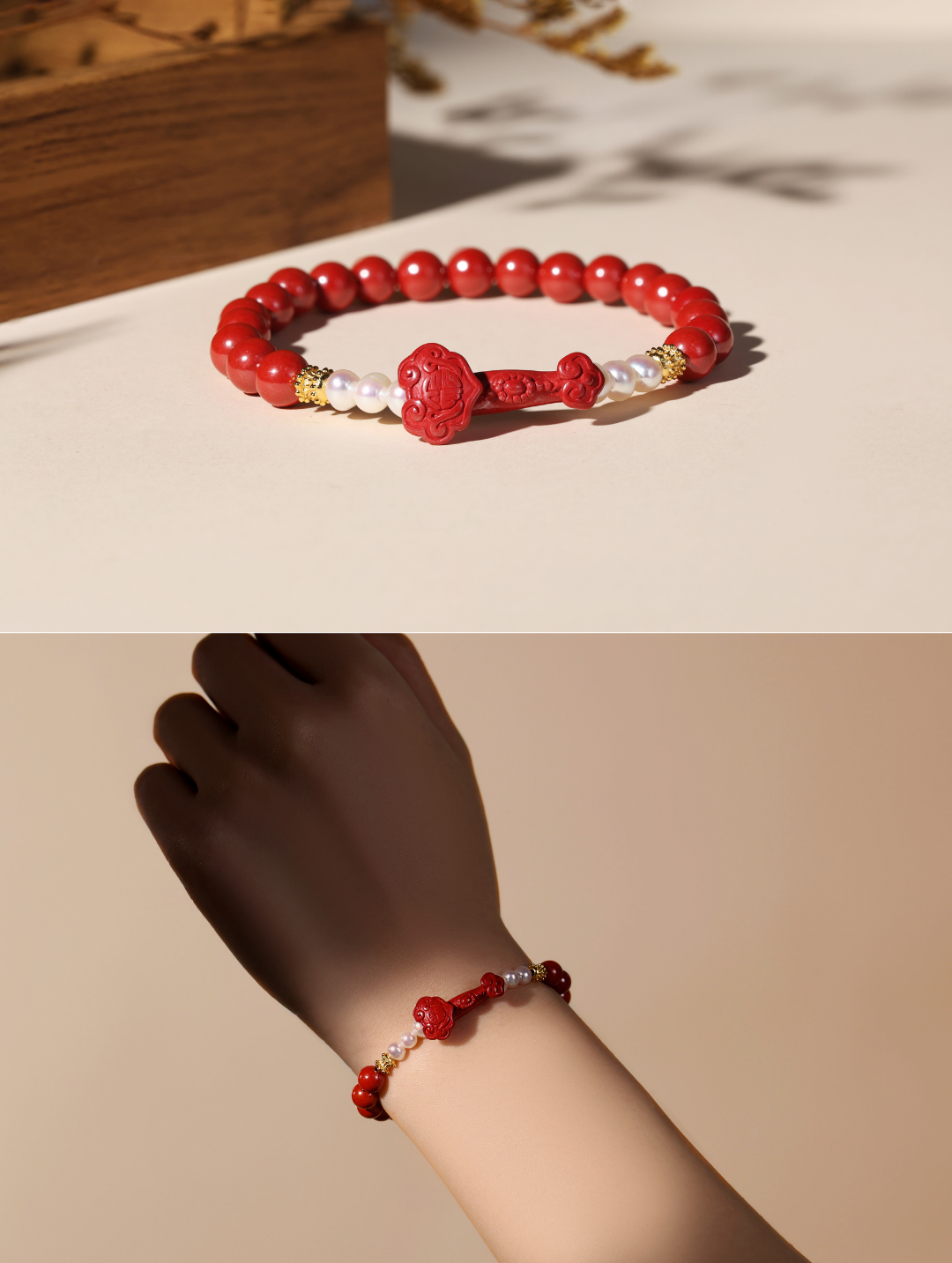 【上新了故宫合作款】诸事顺意如意天然淡水珍珠朱砂手串