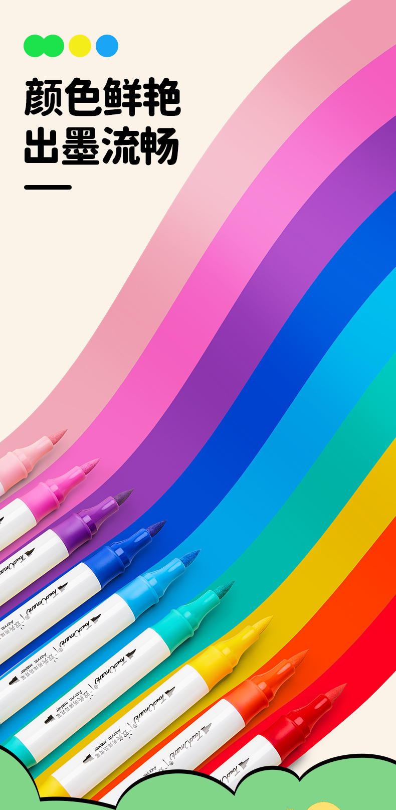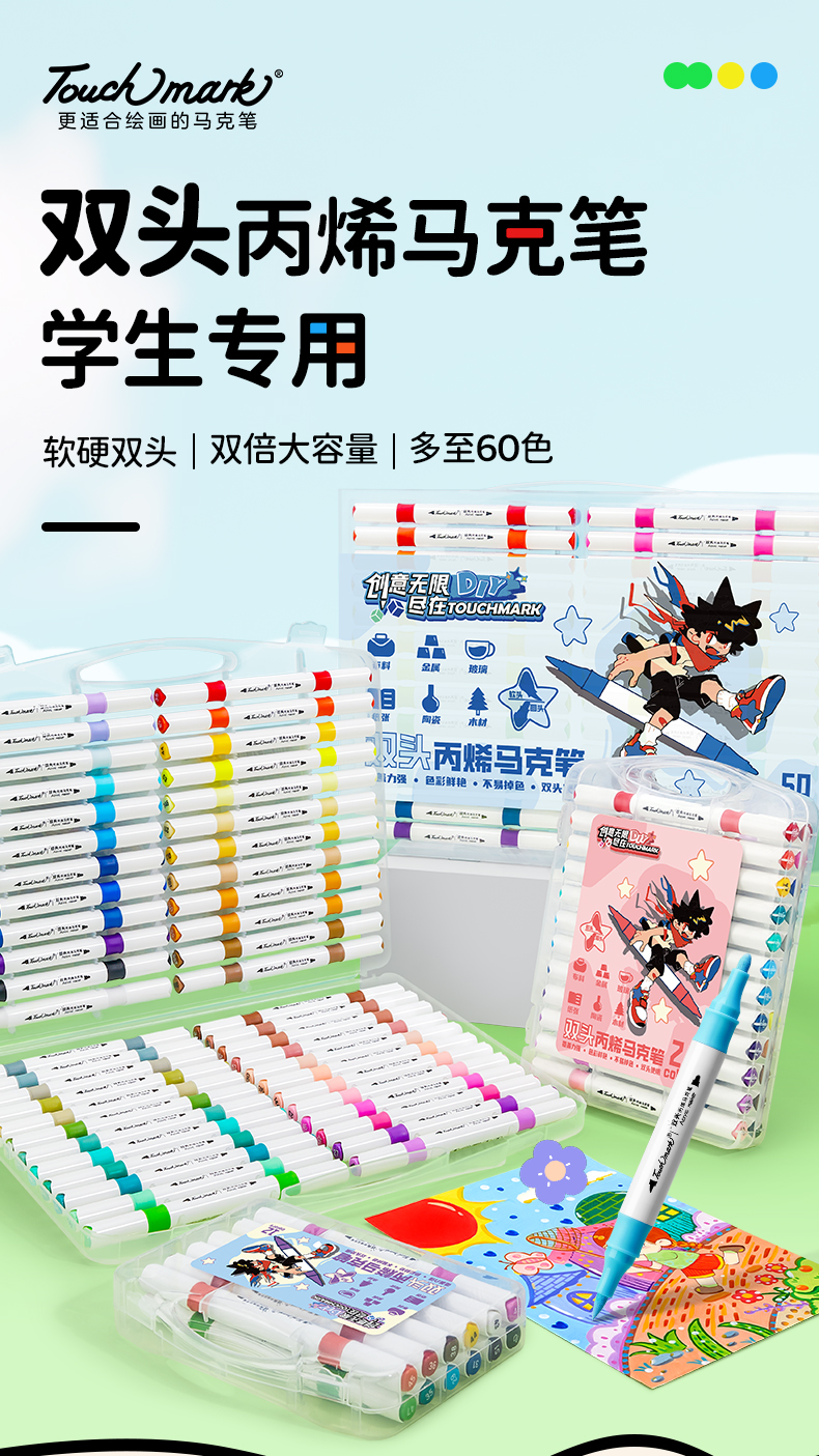 Touchmark泰驰马克-笔酷双头&软头丙烯马克笔