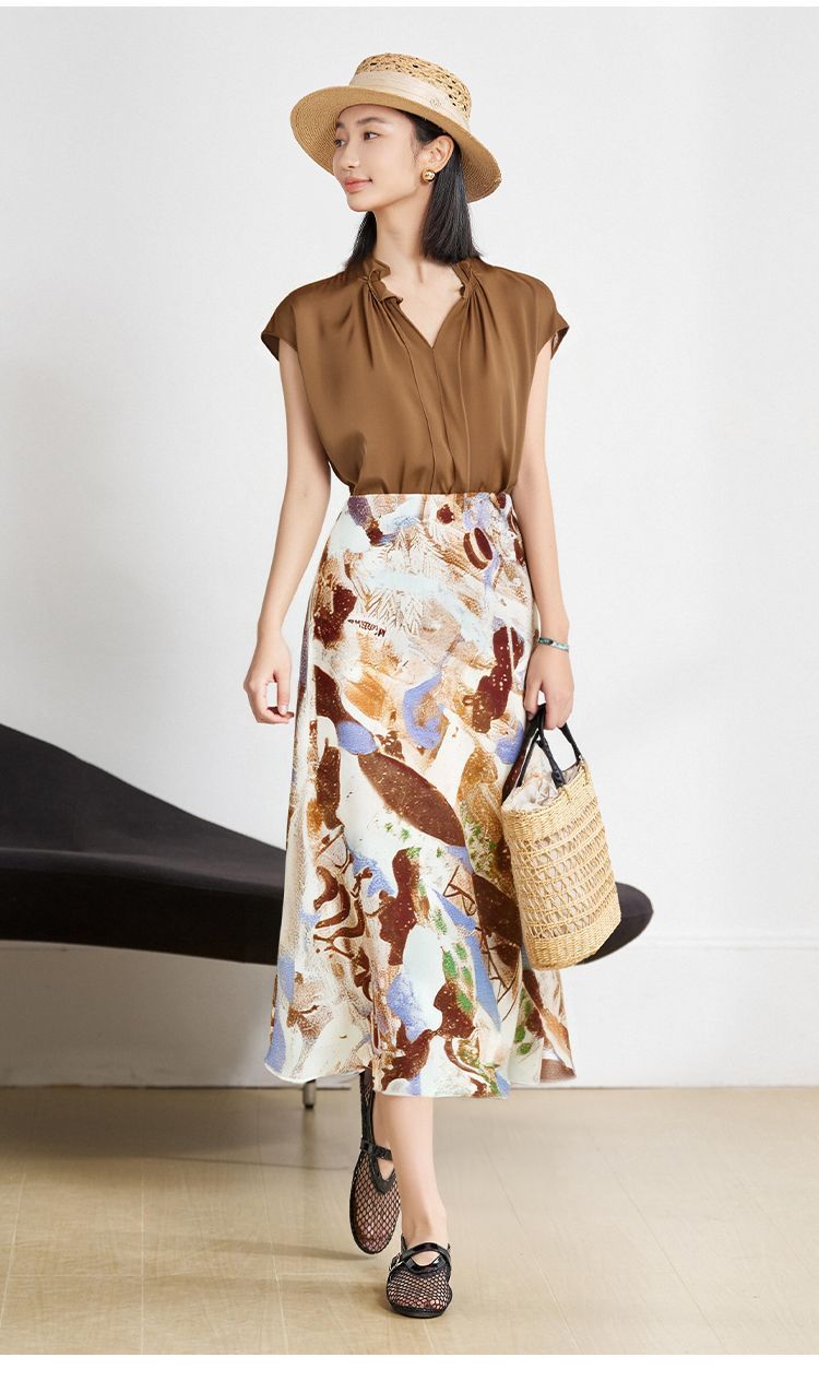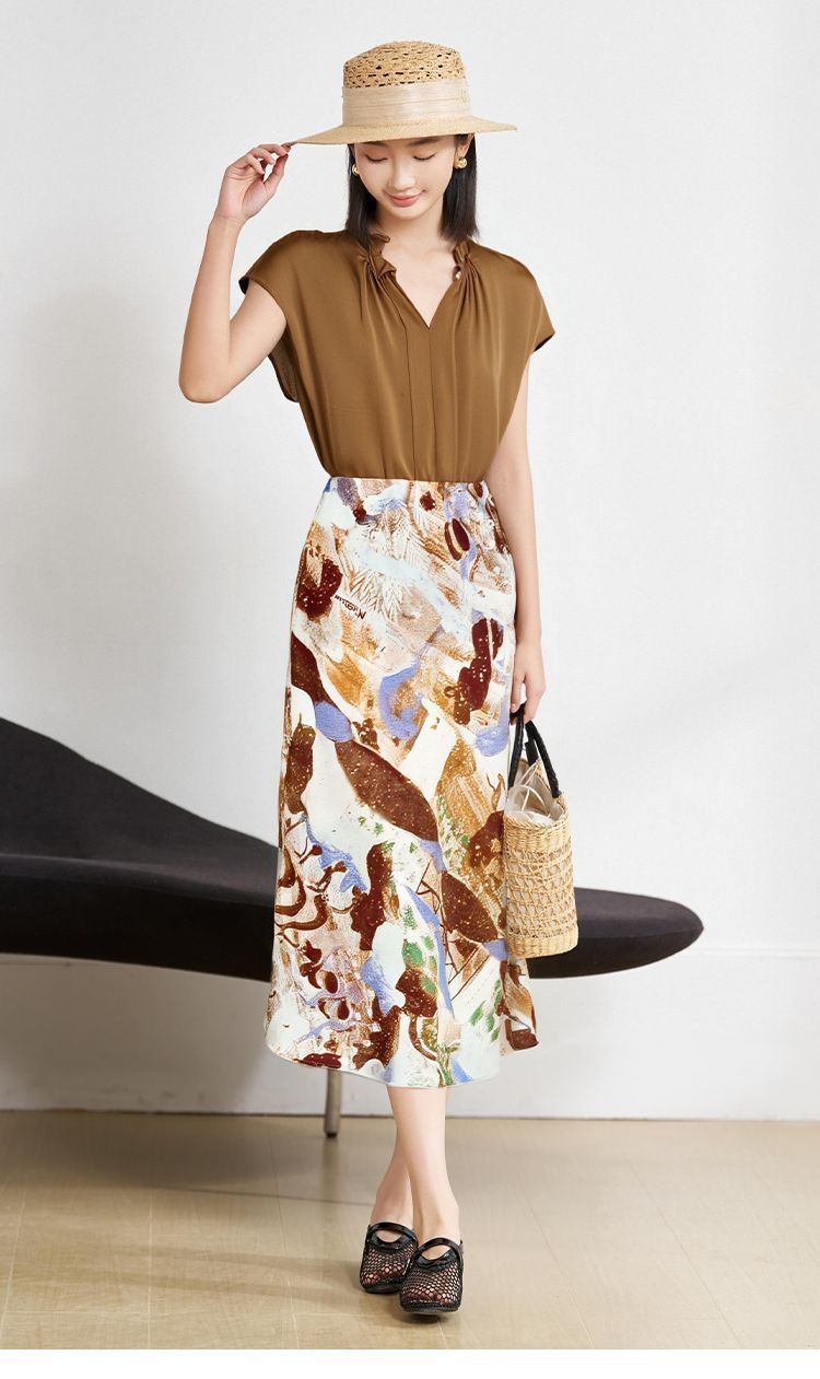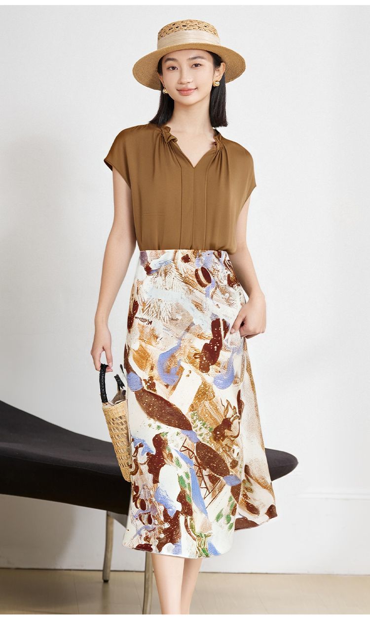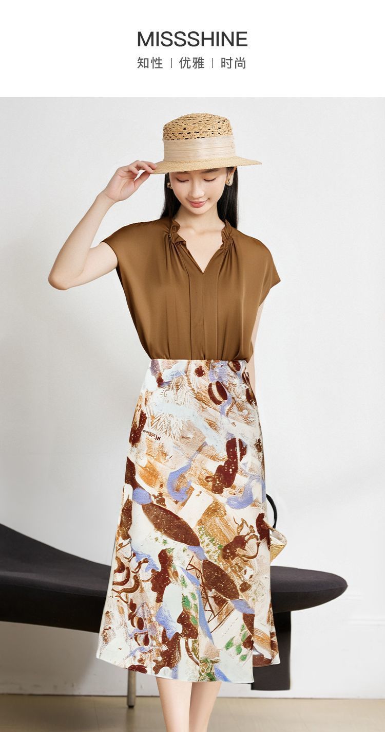 米思阳新款淑女风休闲时尚套装设计感印花半身裙小衫两件套女5M25BG3925