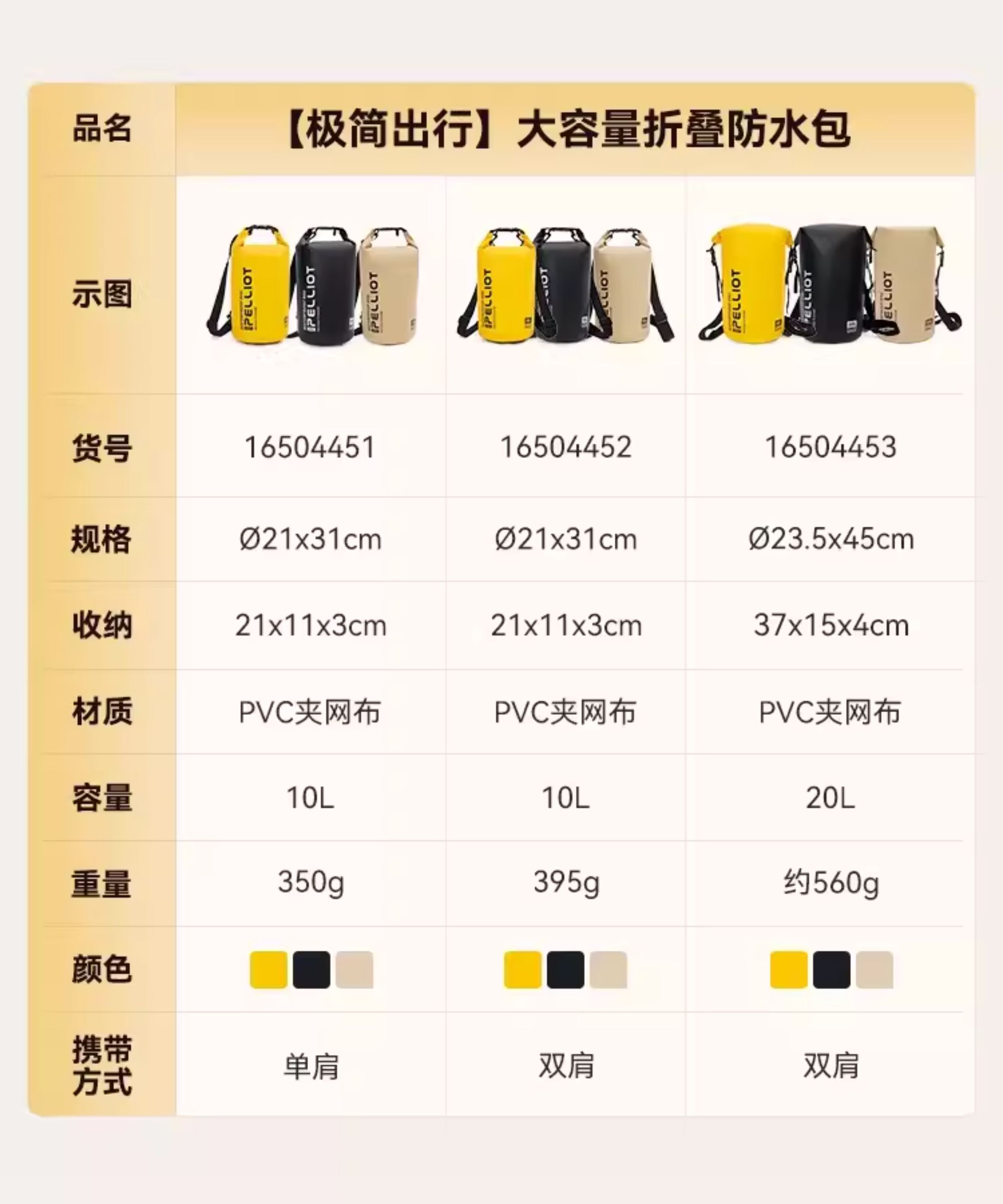 伯希和户外防水包海边沙滩游泳潜水收纳袋登山包漂流浮潜双肩背包