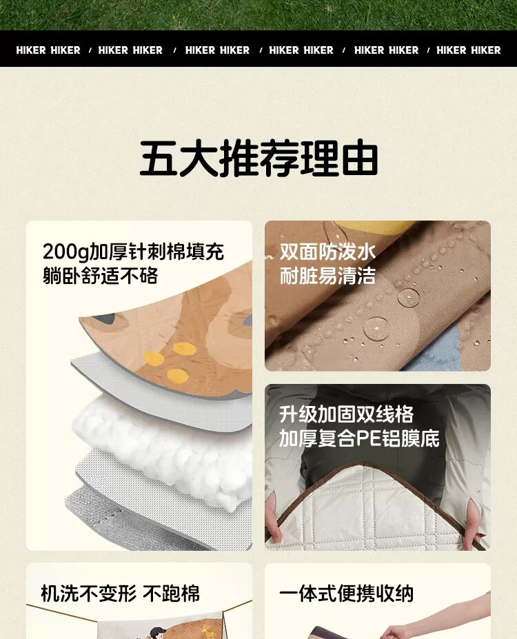 【HIKER】伯希和户外野餐垫超声波便携沙滩防水露营垫子帐篷坐垫