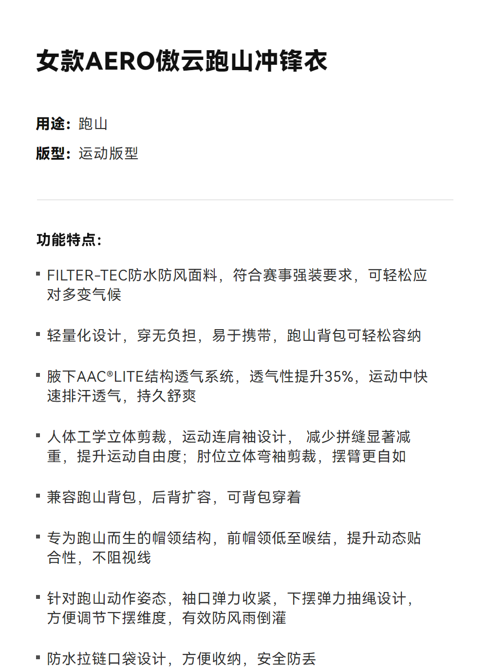 KAILAS凯乐石 女款AERO傲云跑山冲锋衣 KG2621204