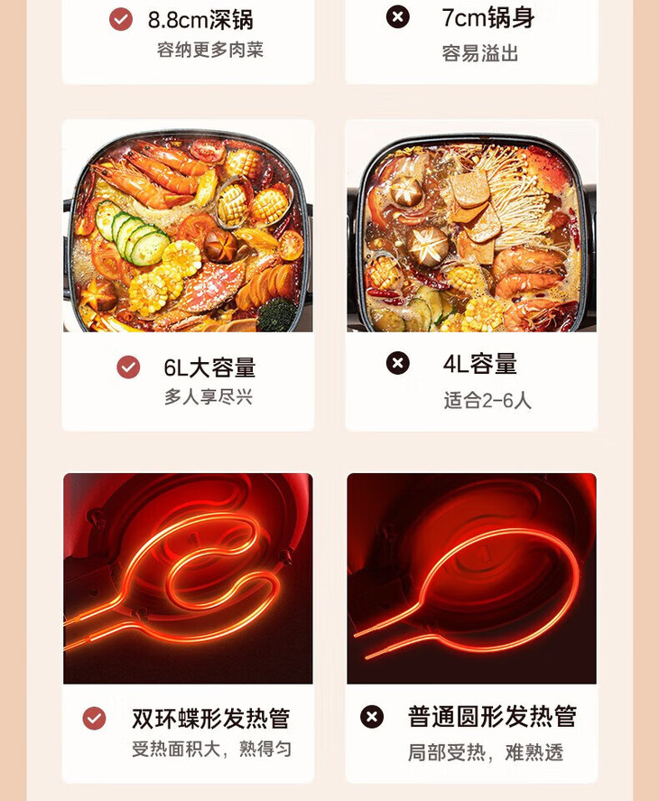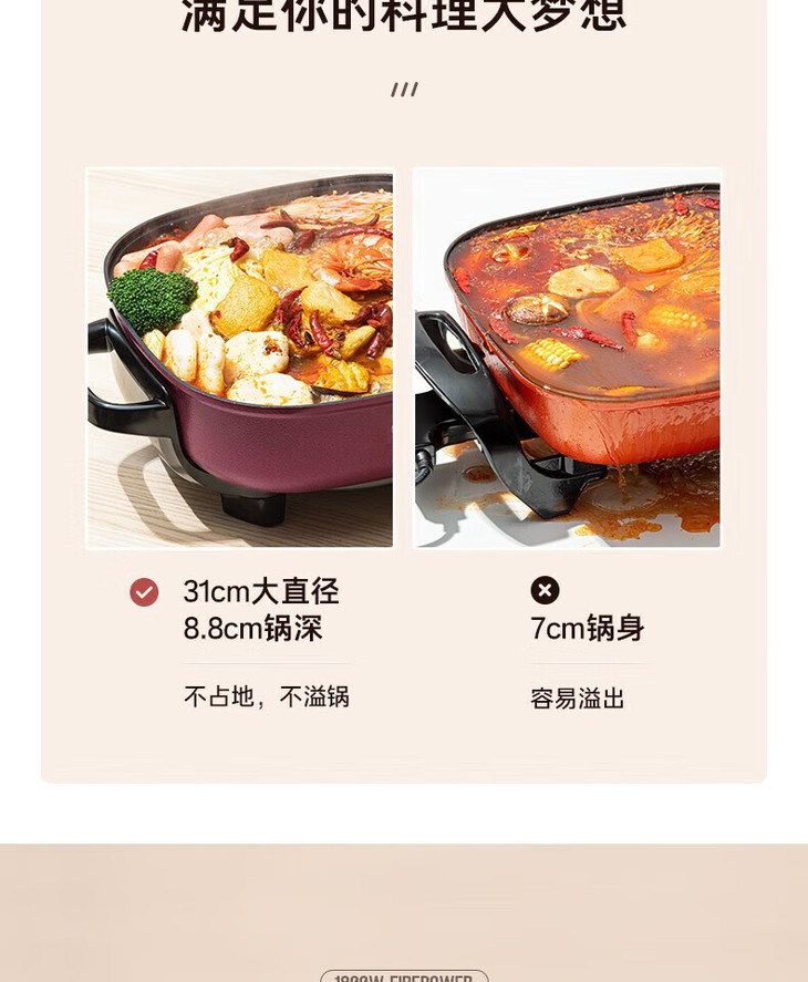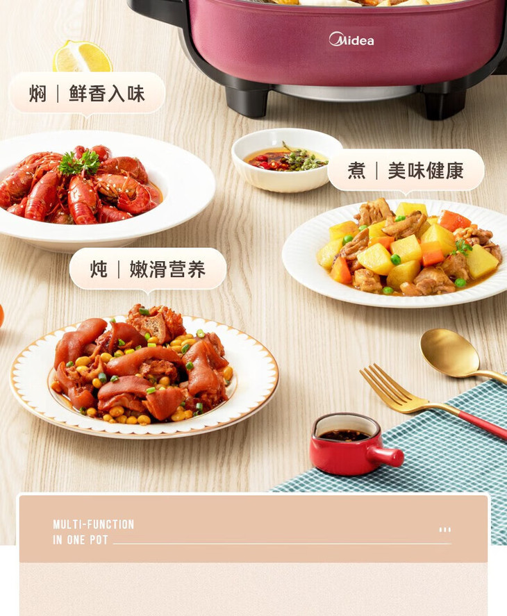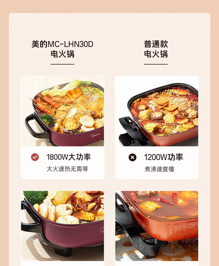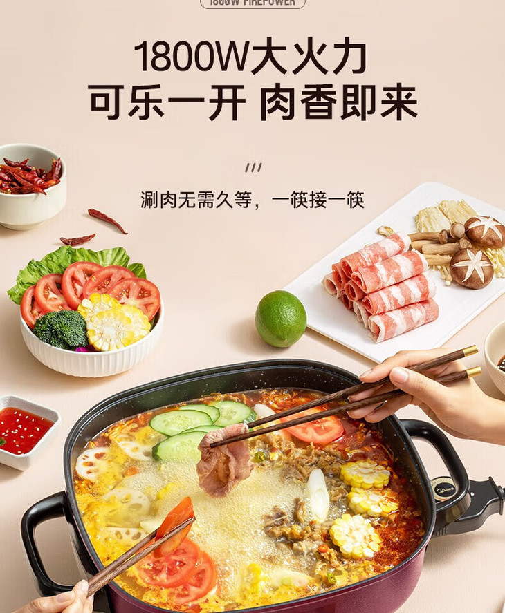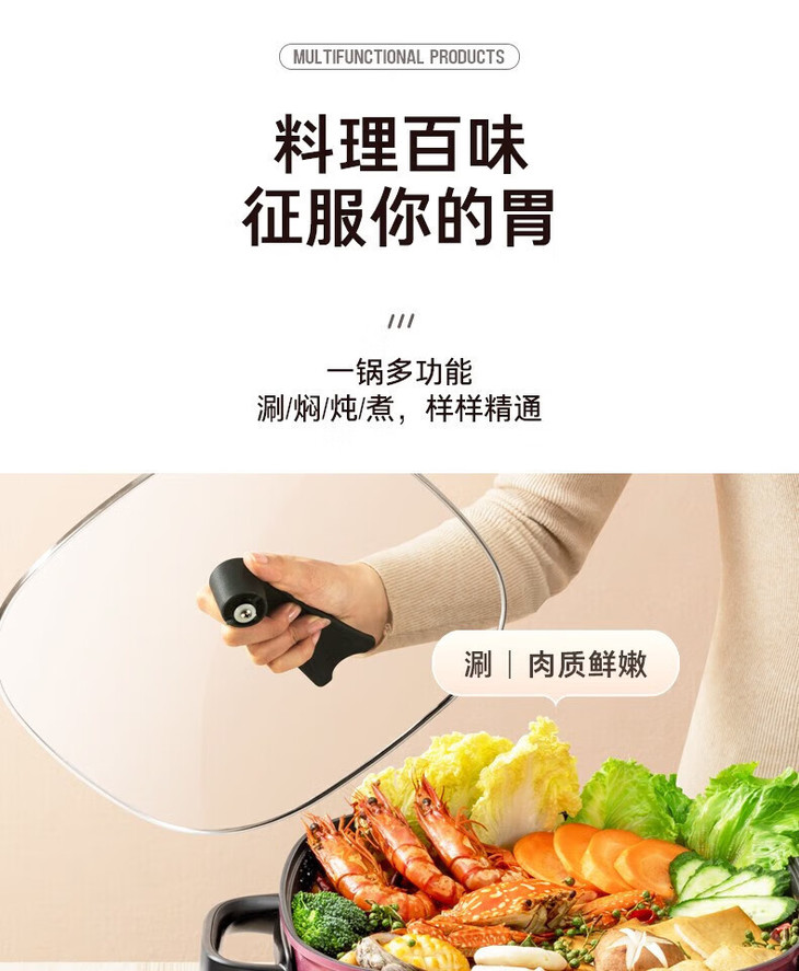美的(509929)多用途锅 6升电火锅 电炒锅 电煮锅家用多功能蒸煮一体锅 MC-LHN30D