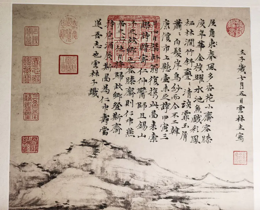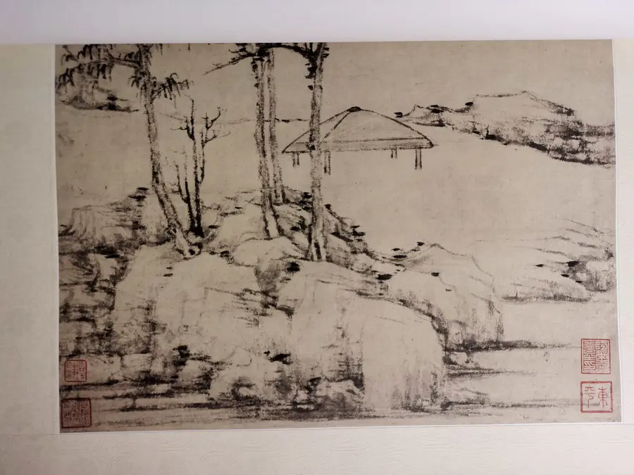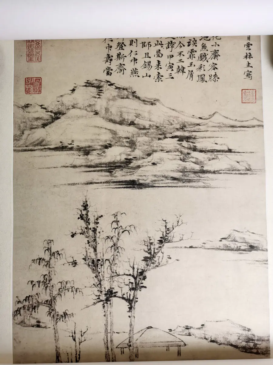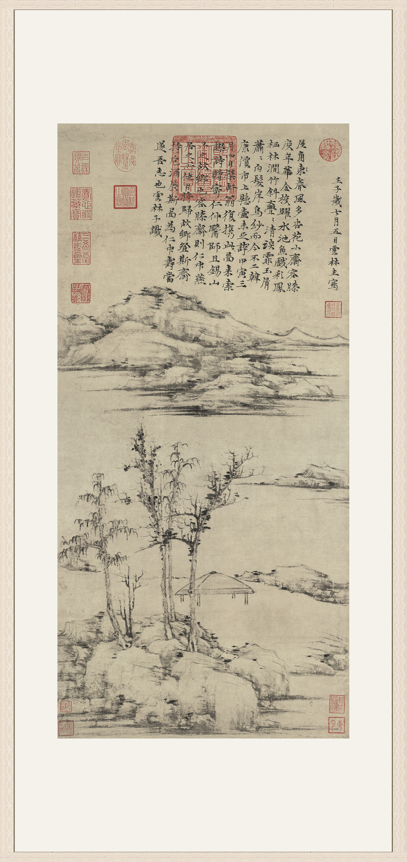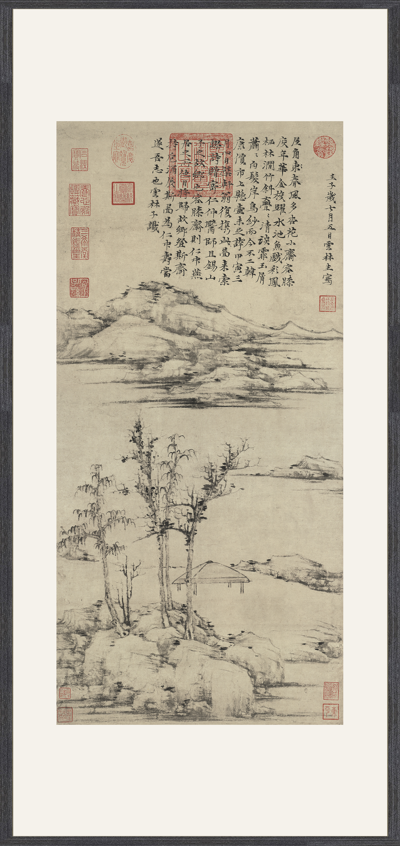 【定制书画】(元明)倪瓒《容膝斋图》镜片镶画框 成品 馆藏书画Gao仿复制艺术品(付款后28天内发货,顺丰快递请当场拆箱验收)