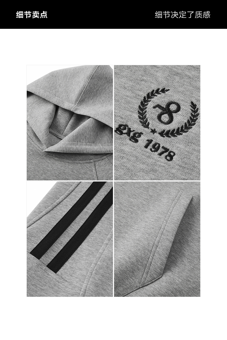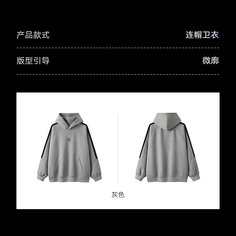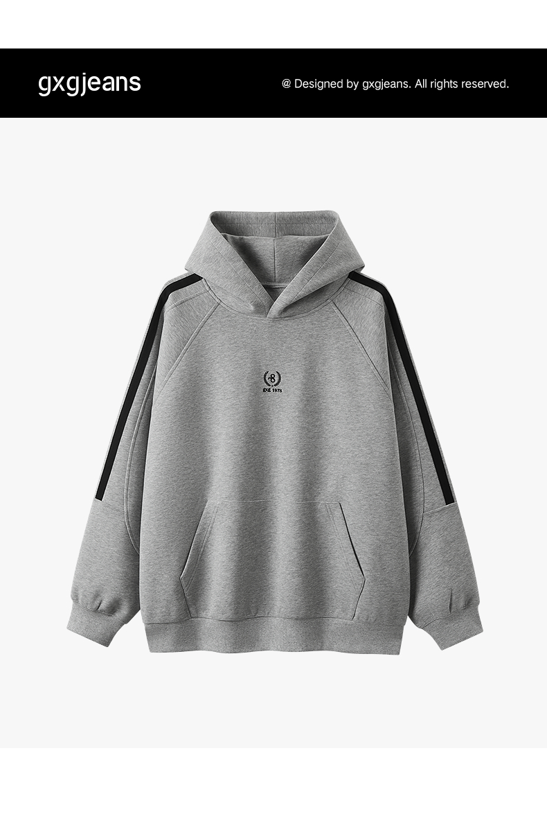 gxg.jeans男装 灰色肩部条纹设计宽松连帽卫衣男士 25年冬热卖款