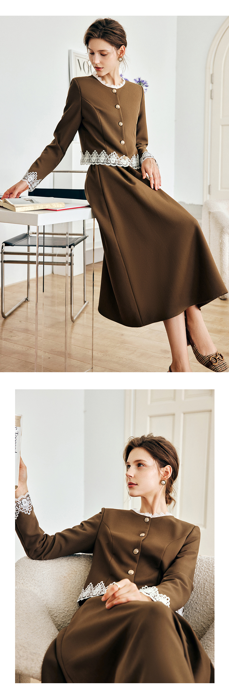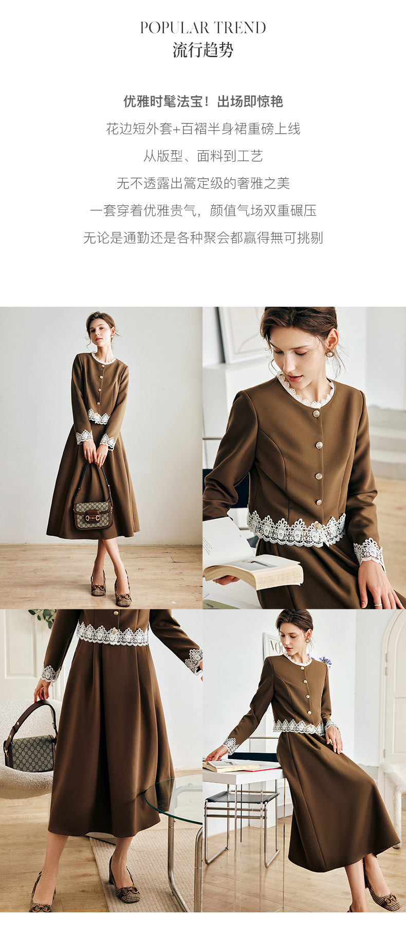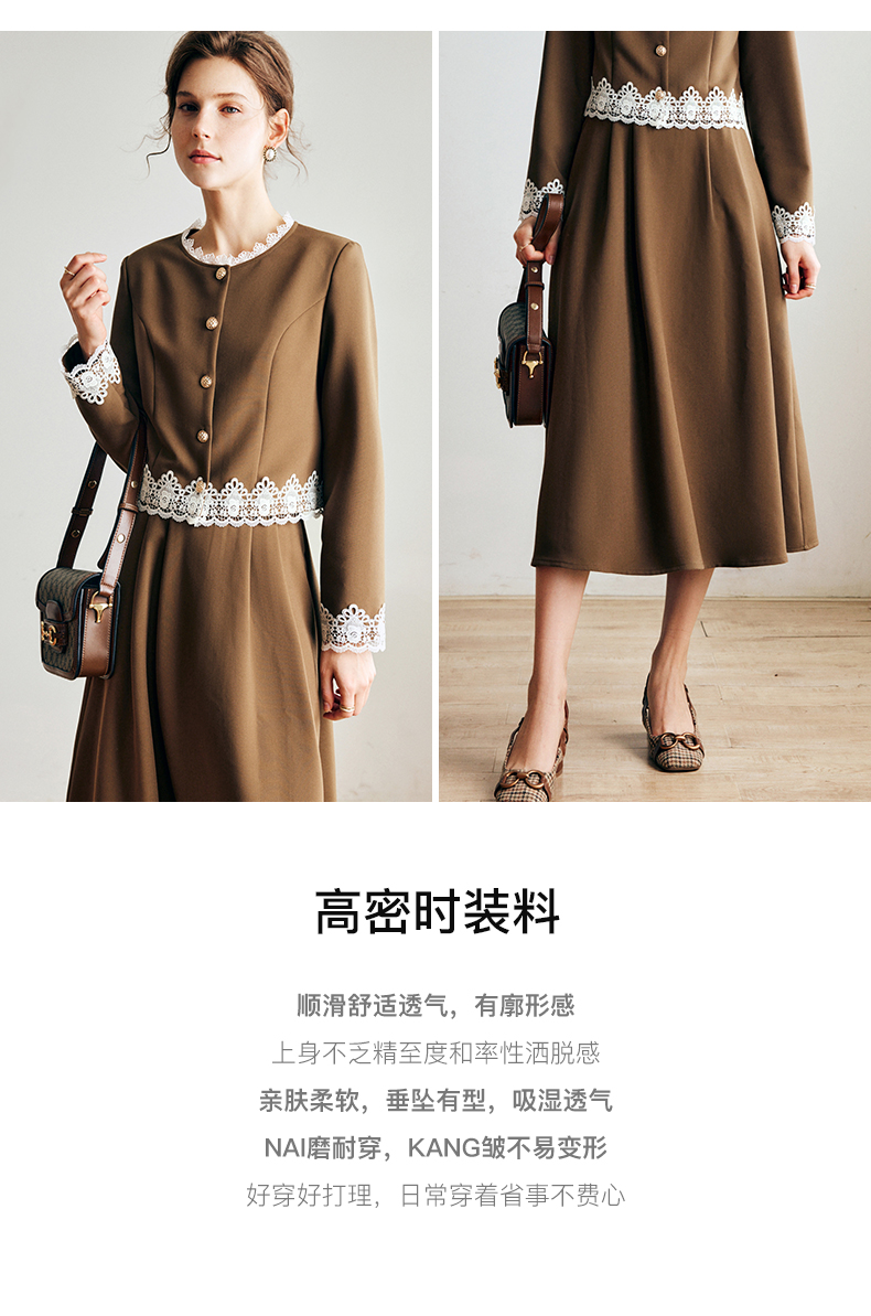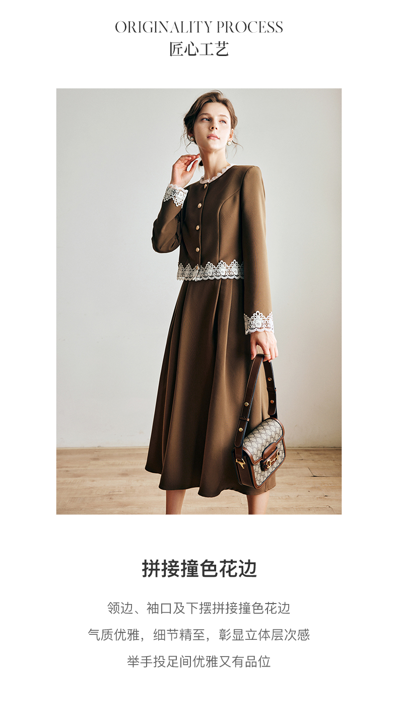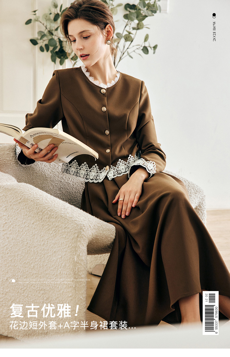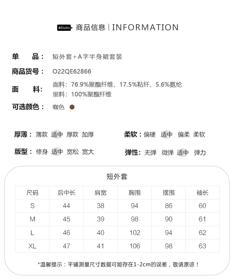 OLrain欧芮儿法式咖色时尚套装女早秋2022年新款外套半身裙两件套