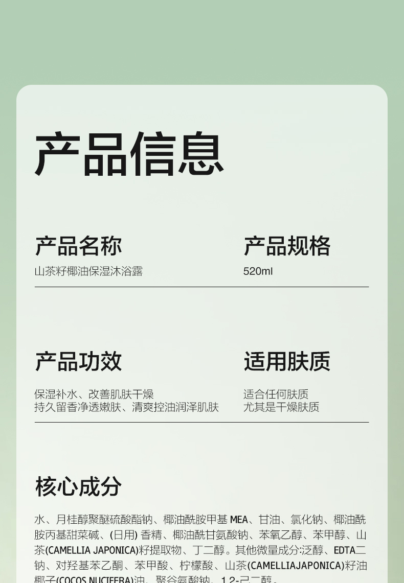 森之露(Seagilon)山茶籽椰油保湿沐浴露520ml