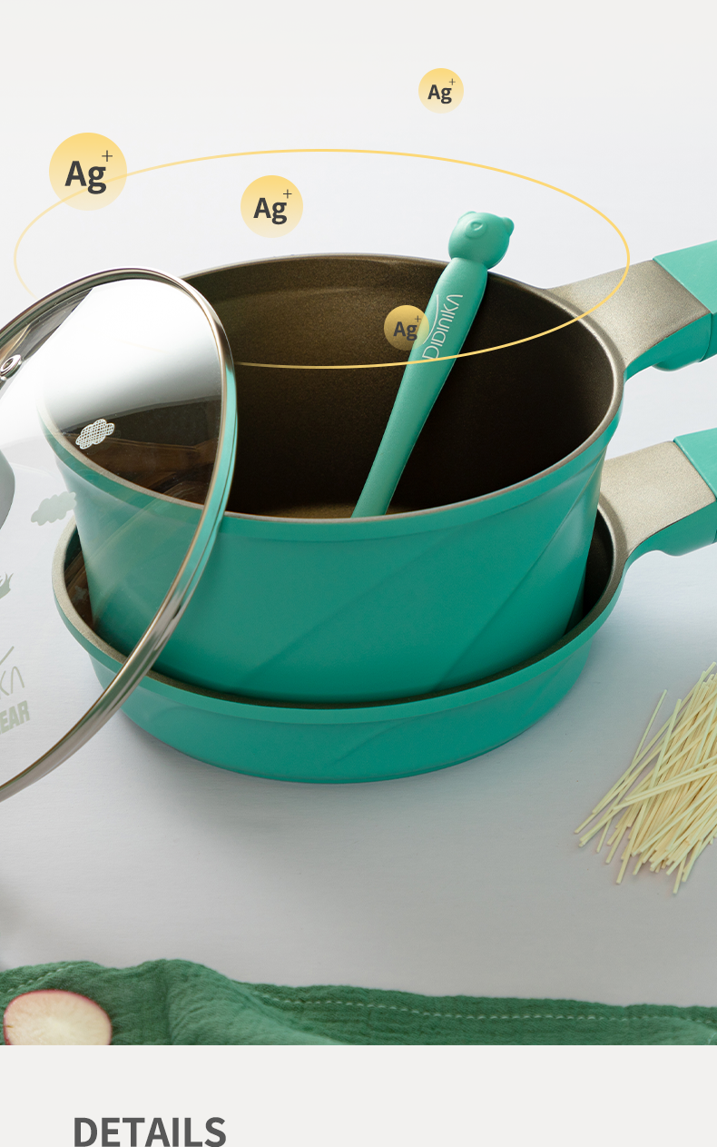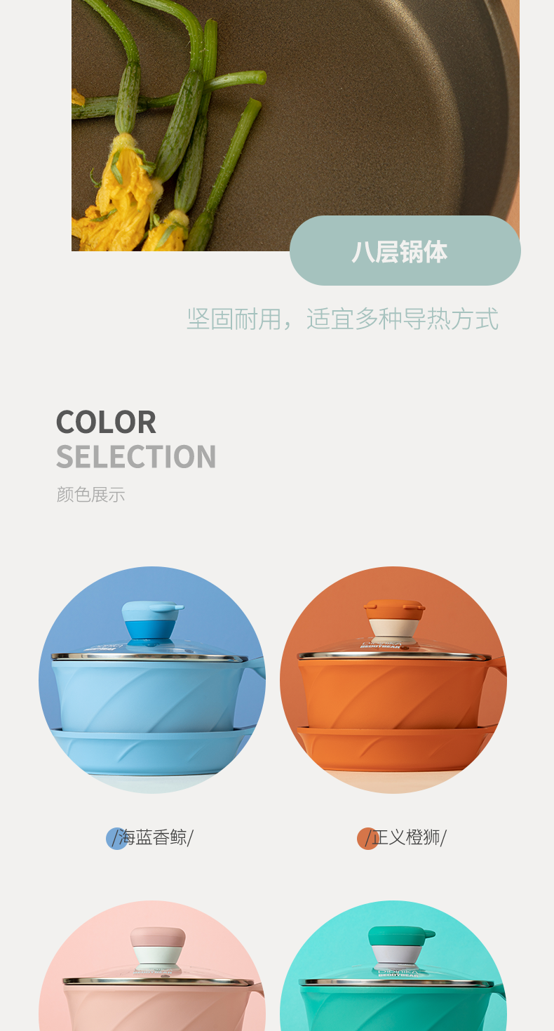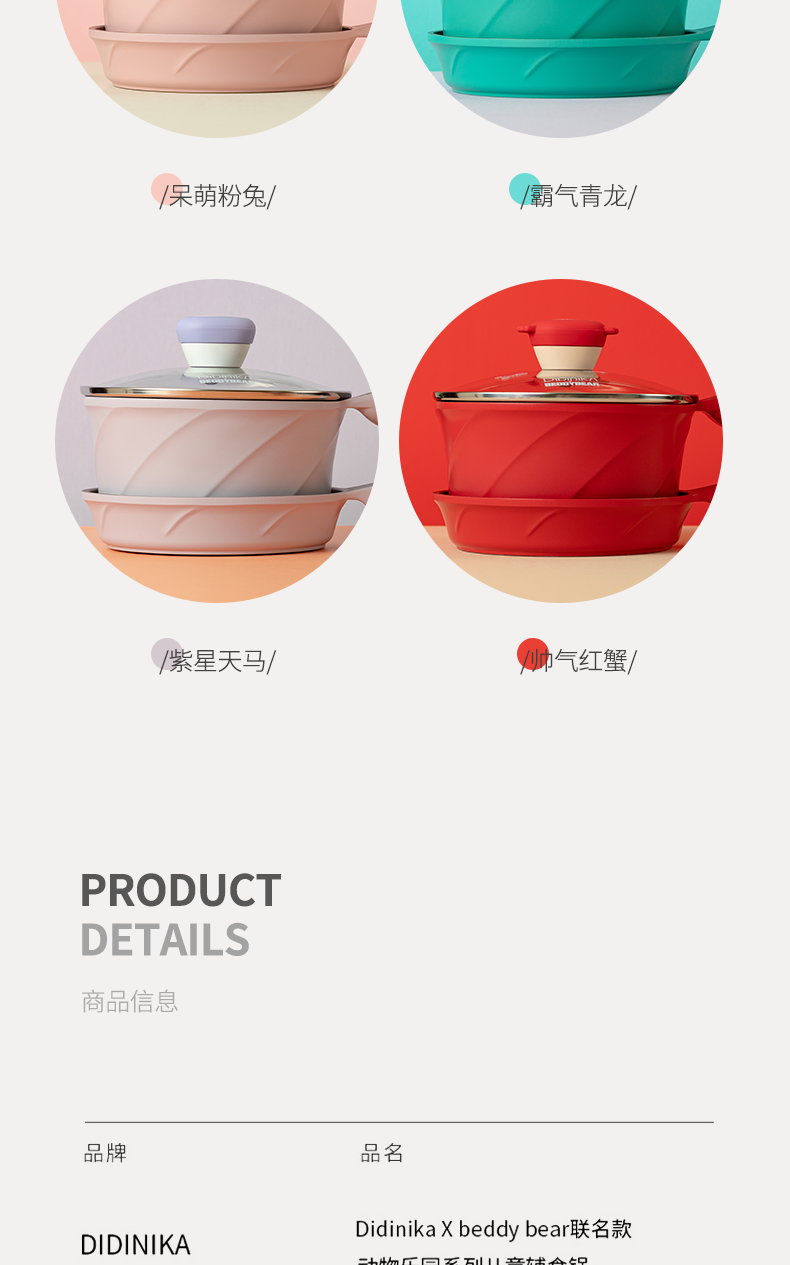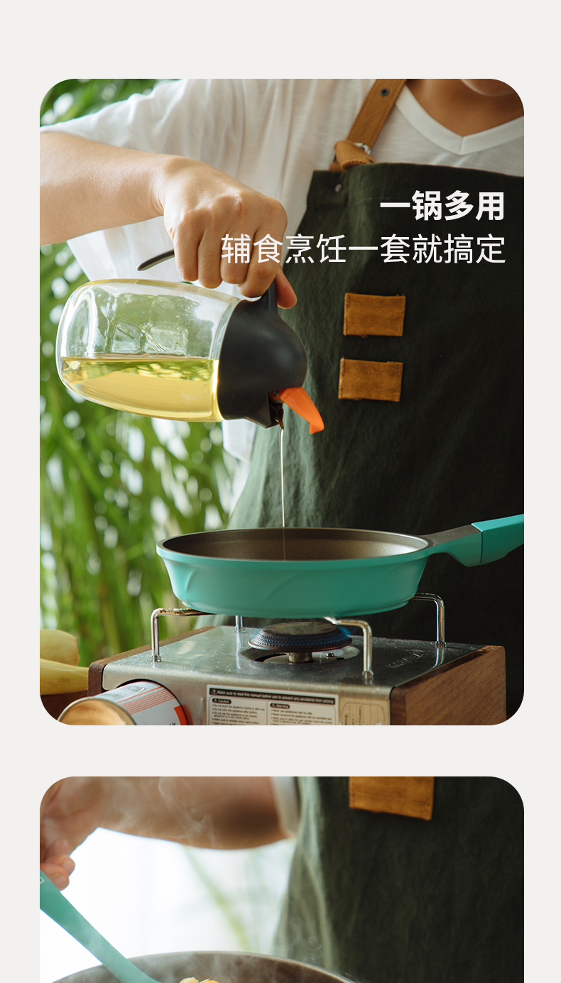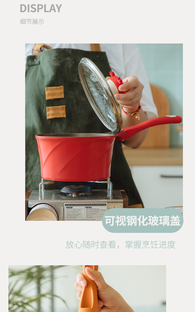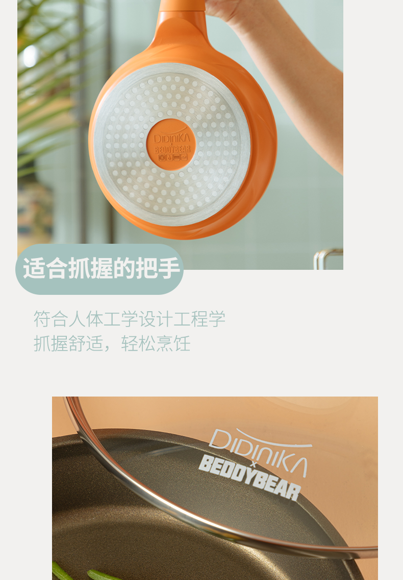 Didinika 动物乐园系列宝宝辅食锅婴儿奶锅18cm小锅平底汤锅陶瓷涂层不粘锅煮(奶锅+煎锅+硅胶勺子+玻璃盖子)