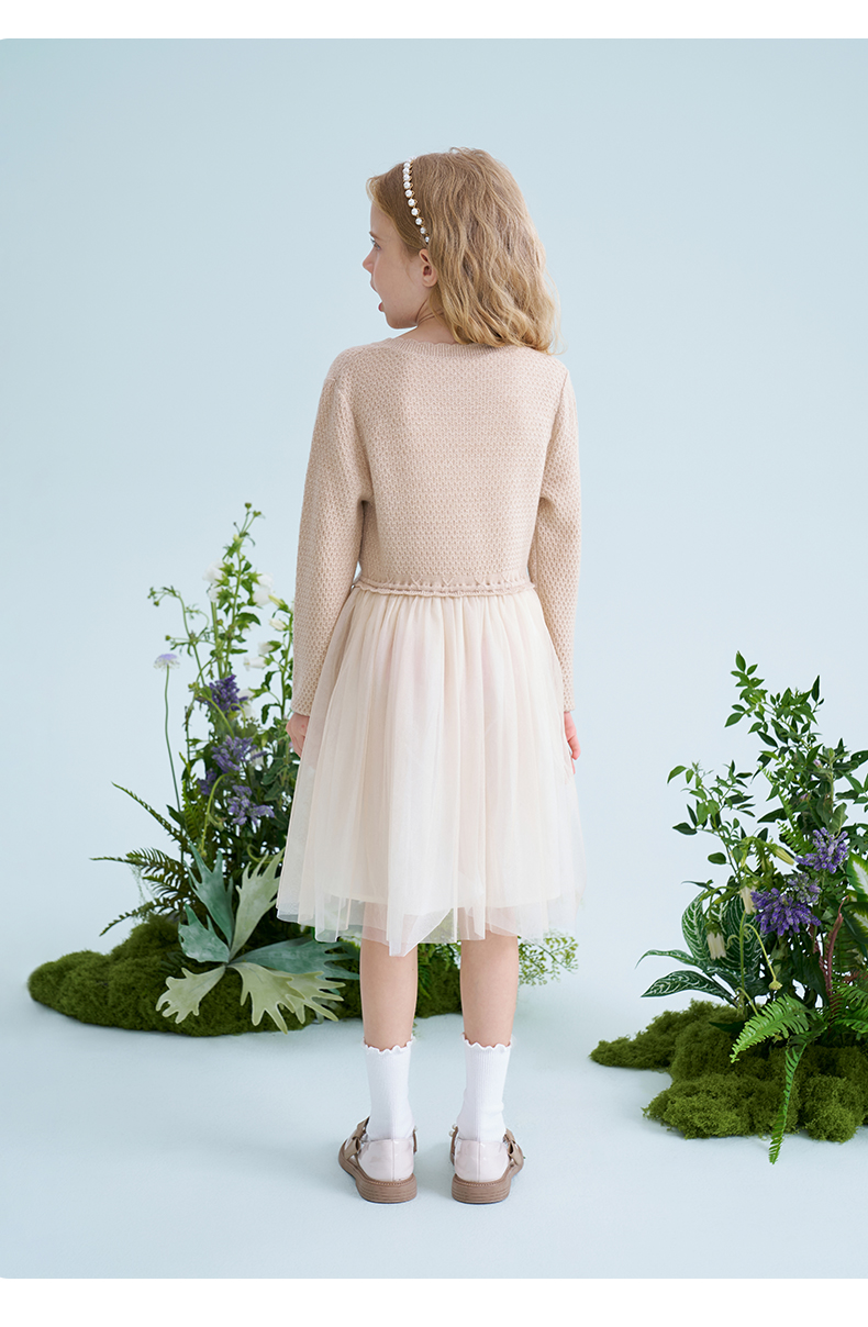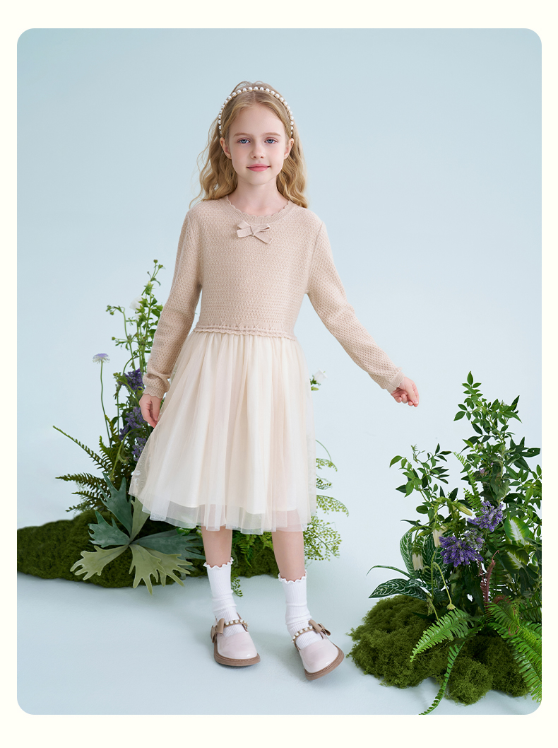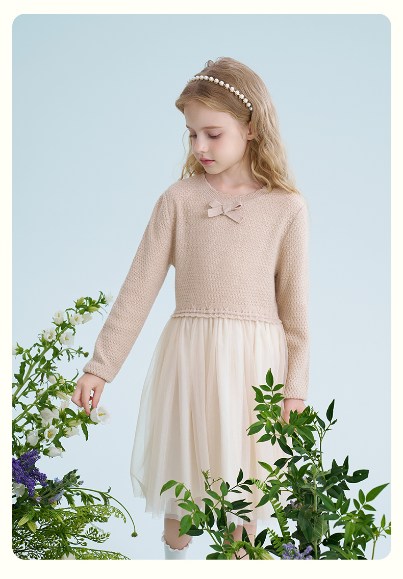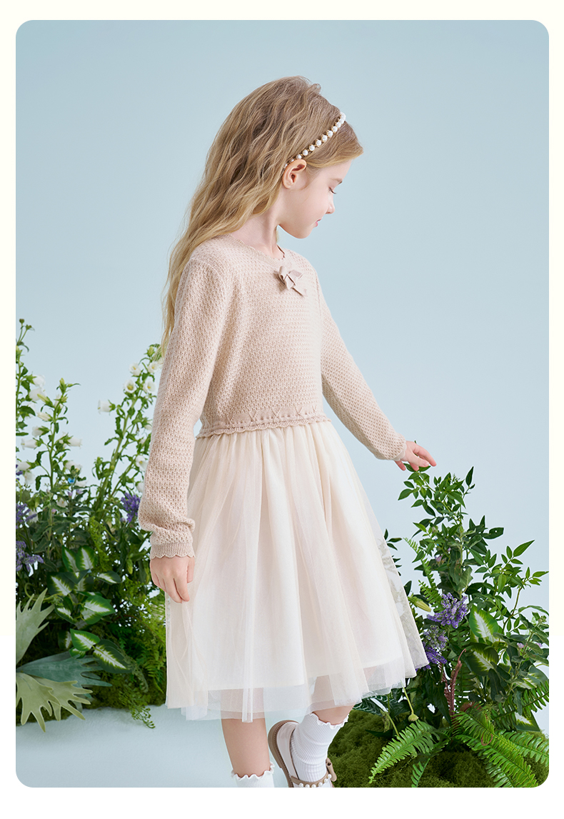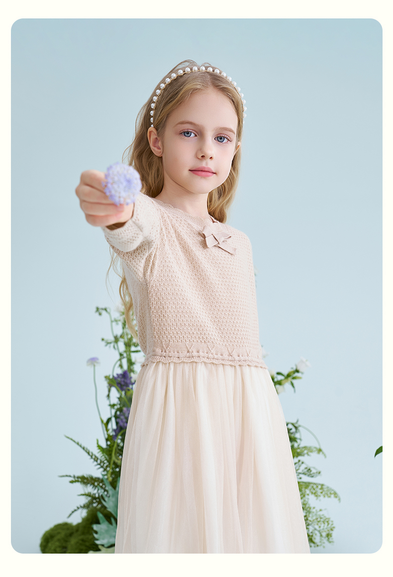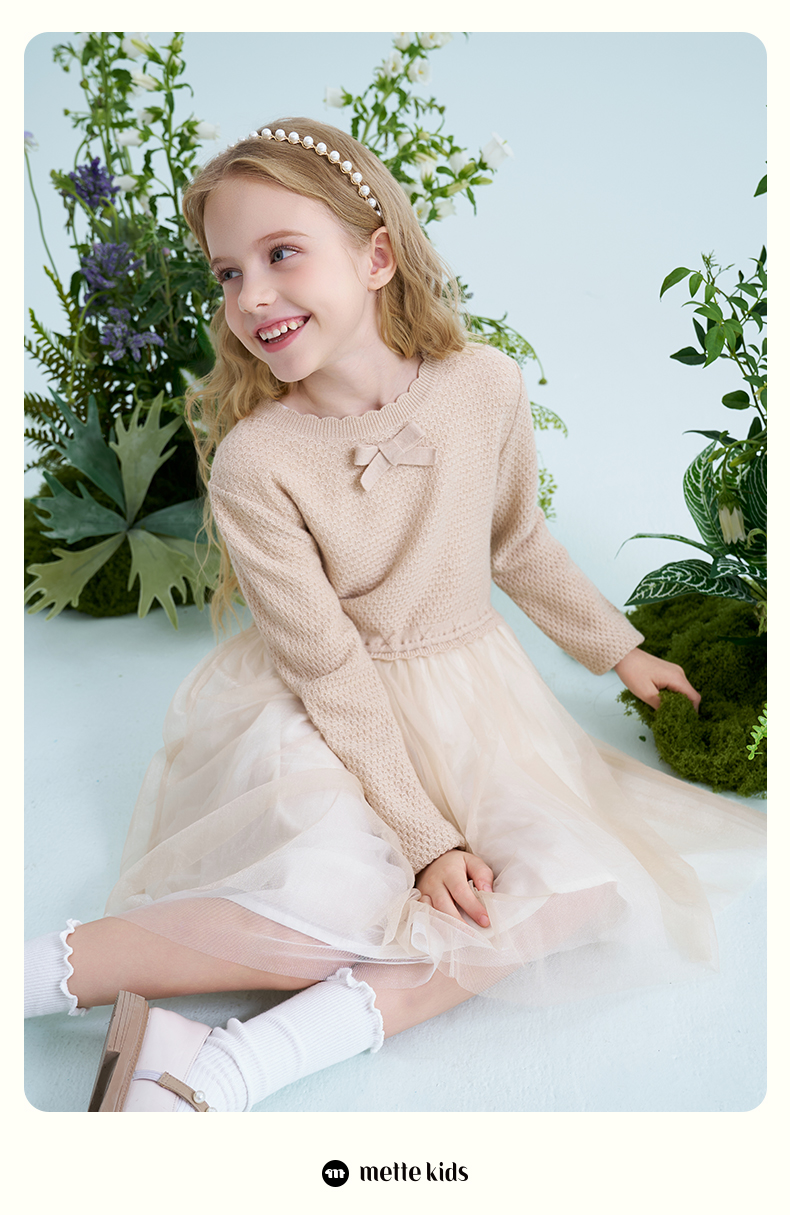 mettekids儿童羊毛连衣裙2025春季新款女童针织网纱公主裙子童装