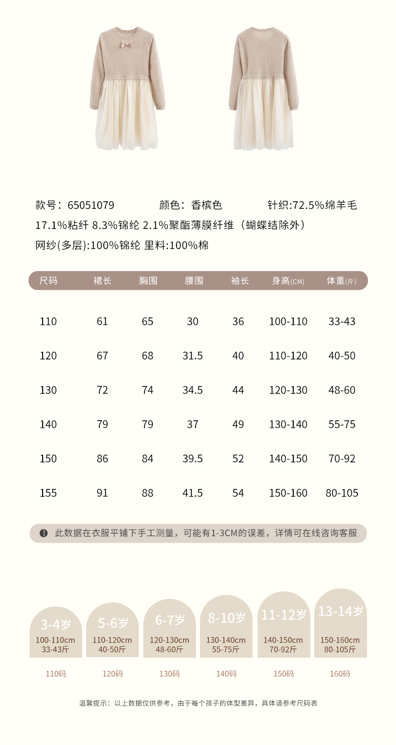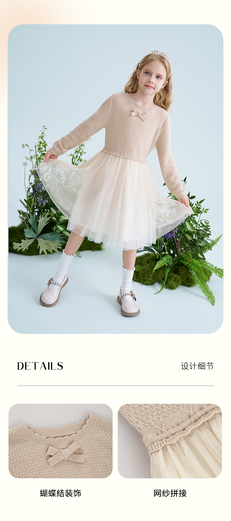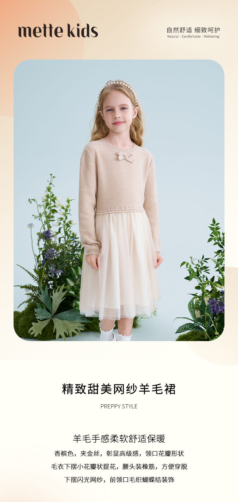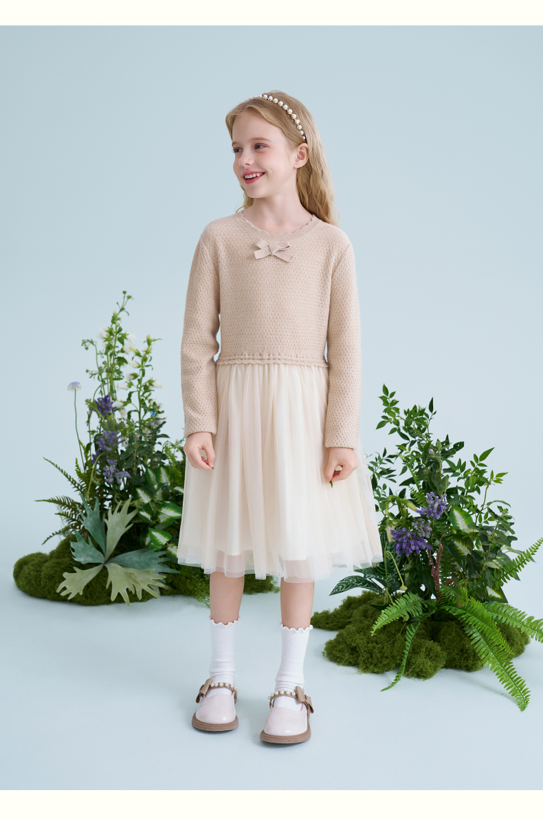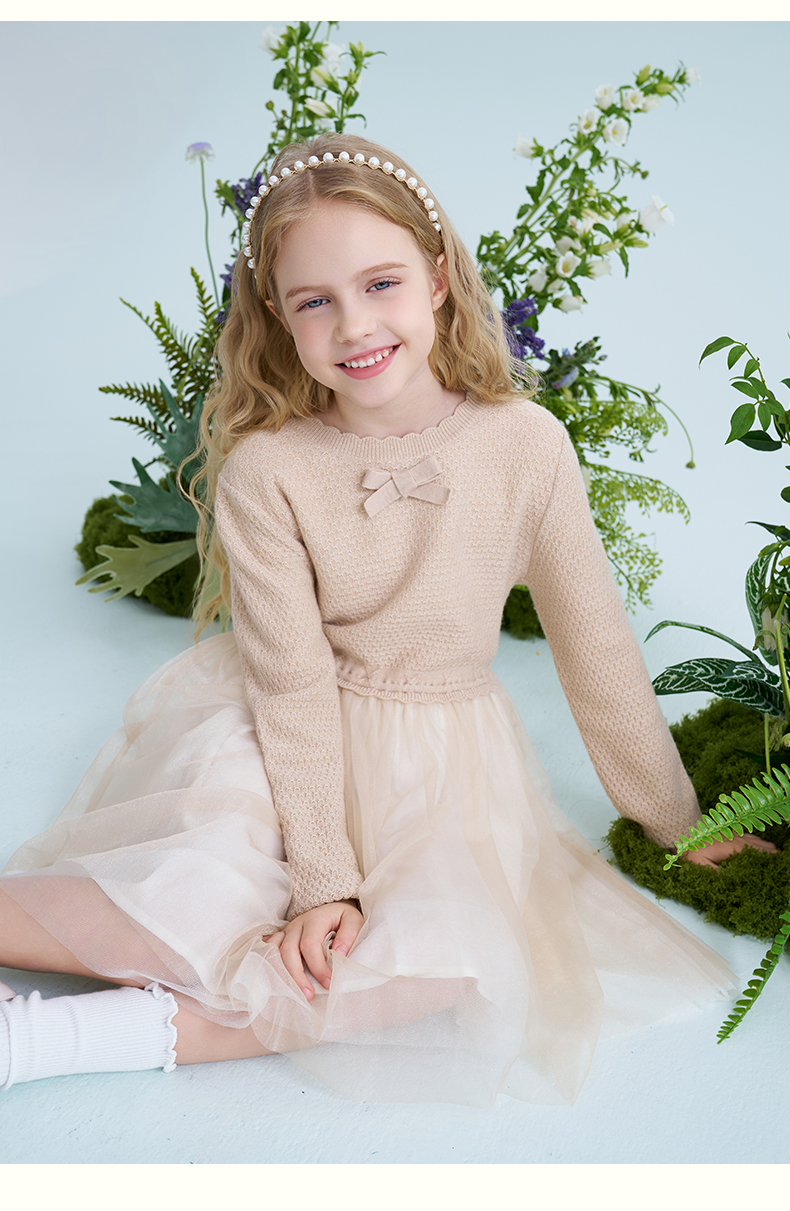 mettekids儿童羊毛连衣裙2025春季新款女童针织网纱公主裙子童装