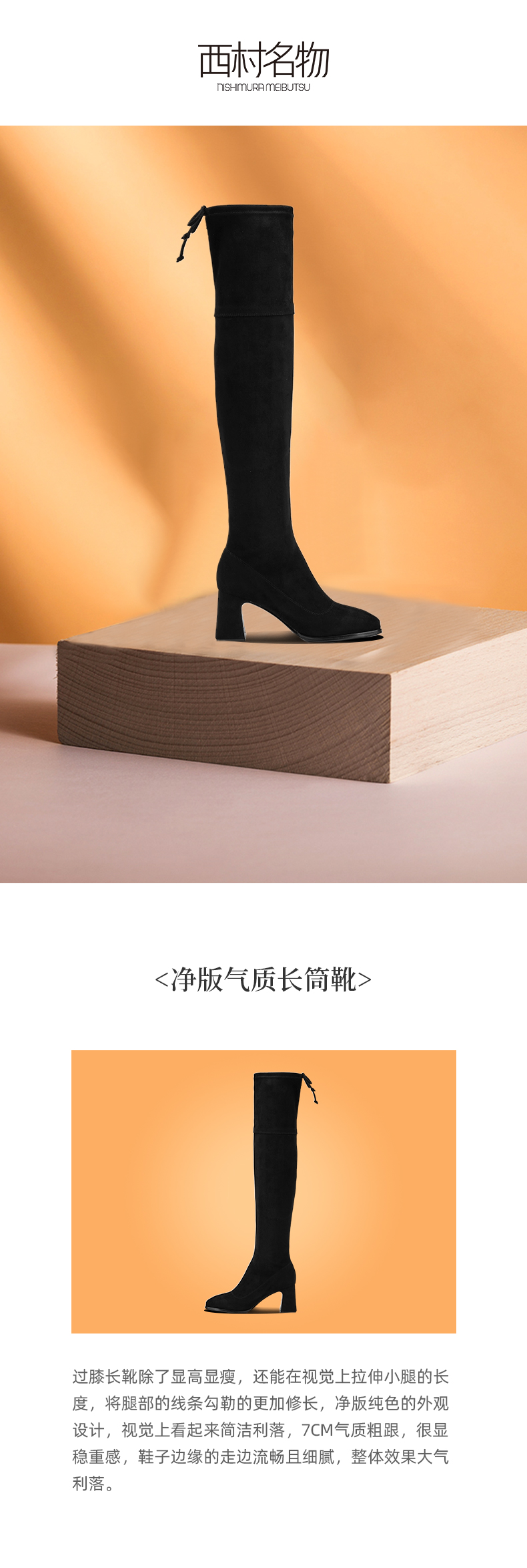 西村名物2021新款过膝真皮长靴舒适弹力靴女瘦瘦靴T21DI43481