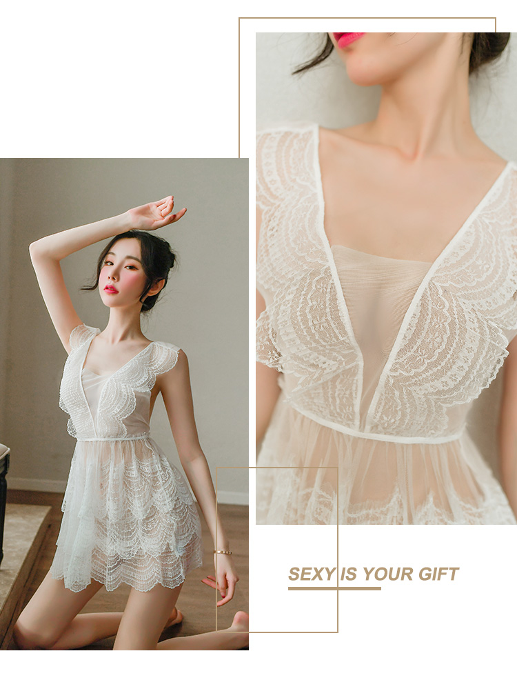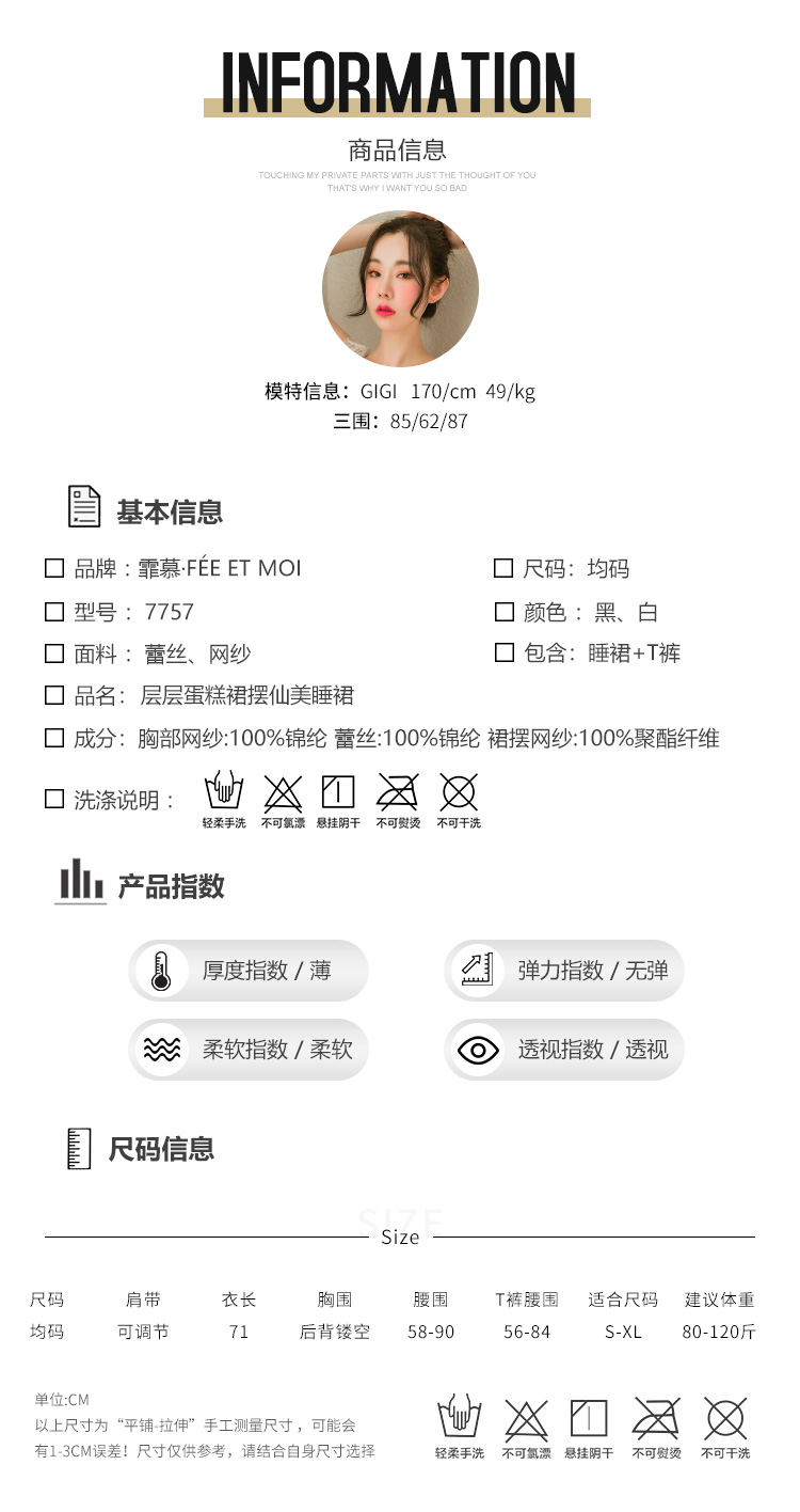 【恋曲·迷迭香】情趣内衣 松紧 收腰 性感 蕾丝 叠层 蓬蓬裙摆 仙女睡裙 型号:7757