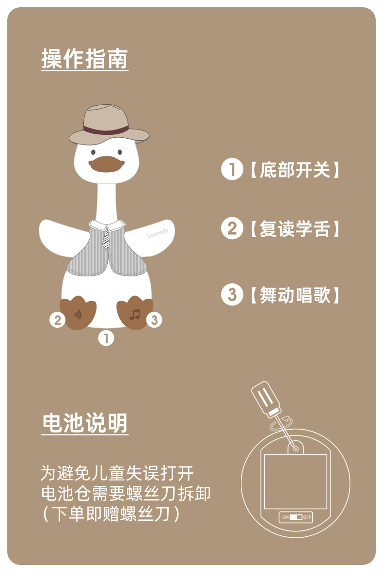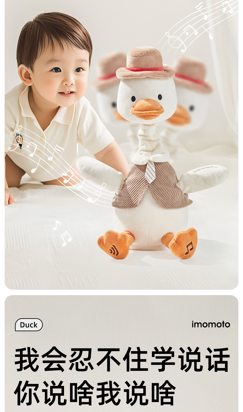 Imomoto 绅士鸭复读鸭婴儿宝宝安抚学毛绒鸭子说话玩具玩偶儿童摇摆娃娃